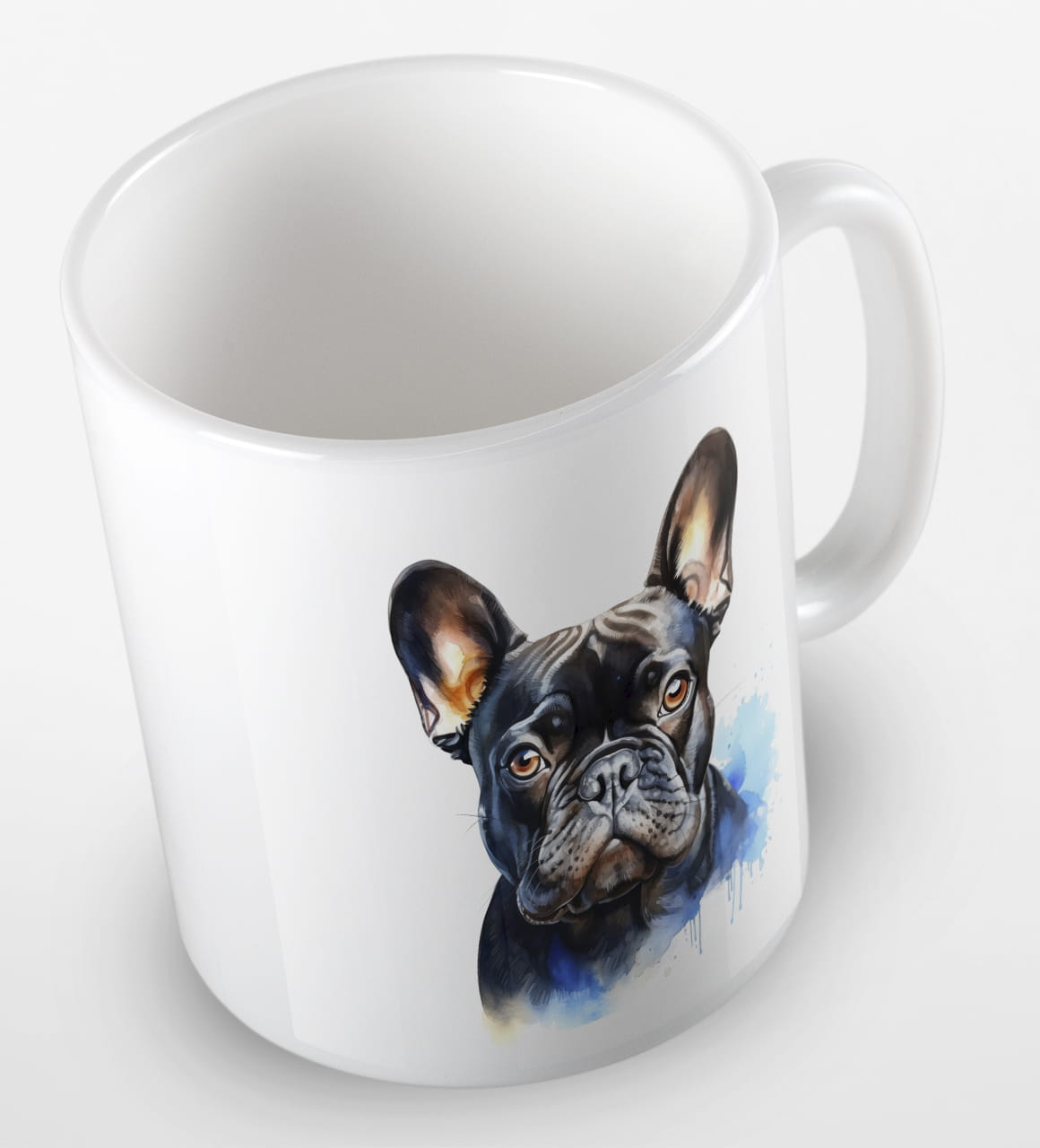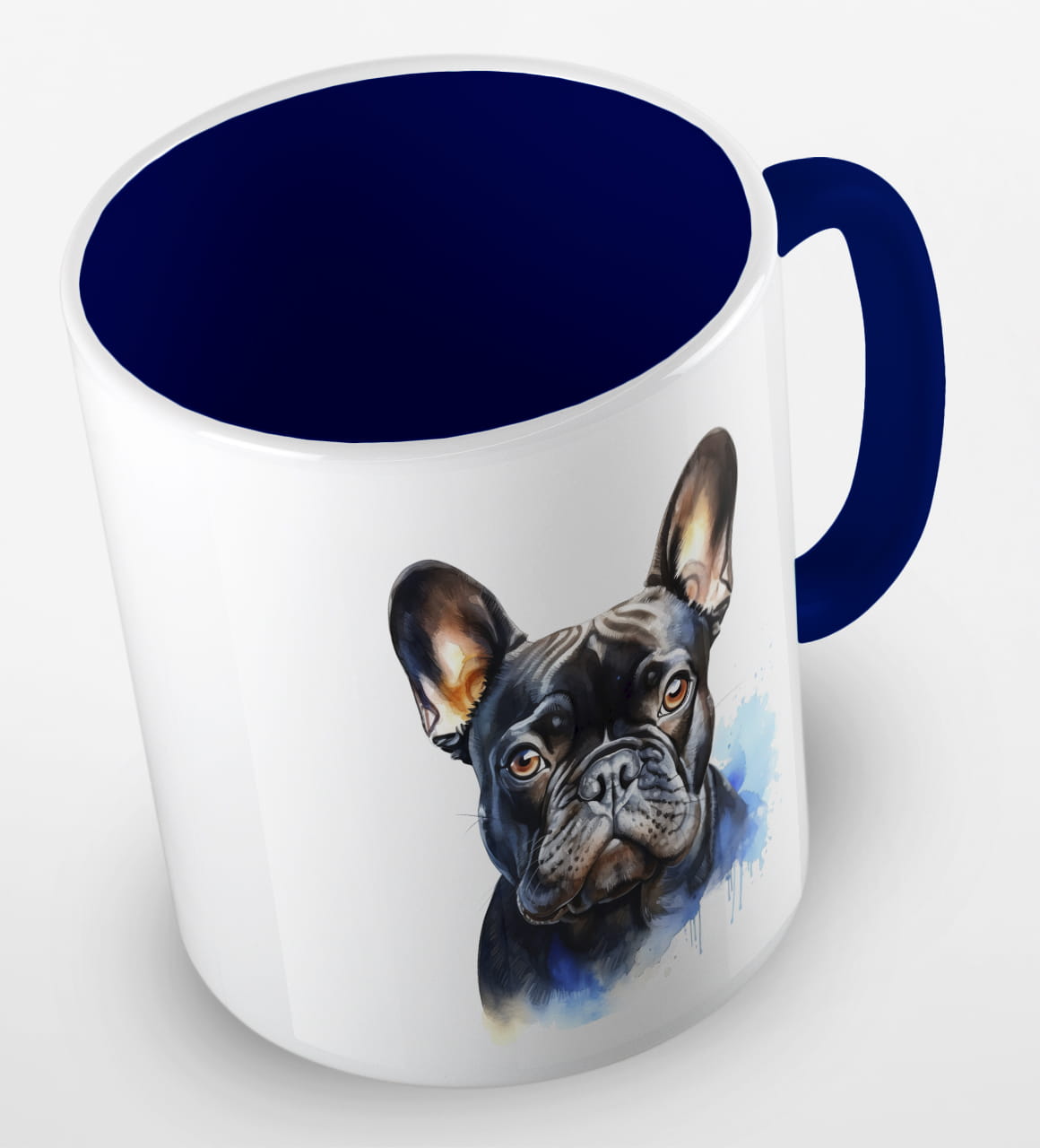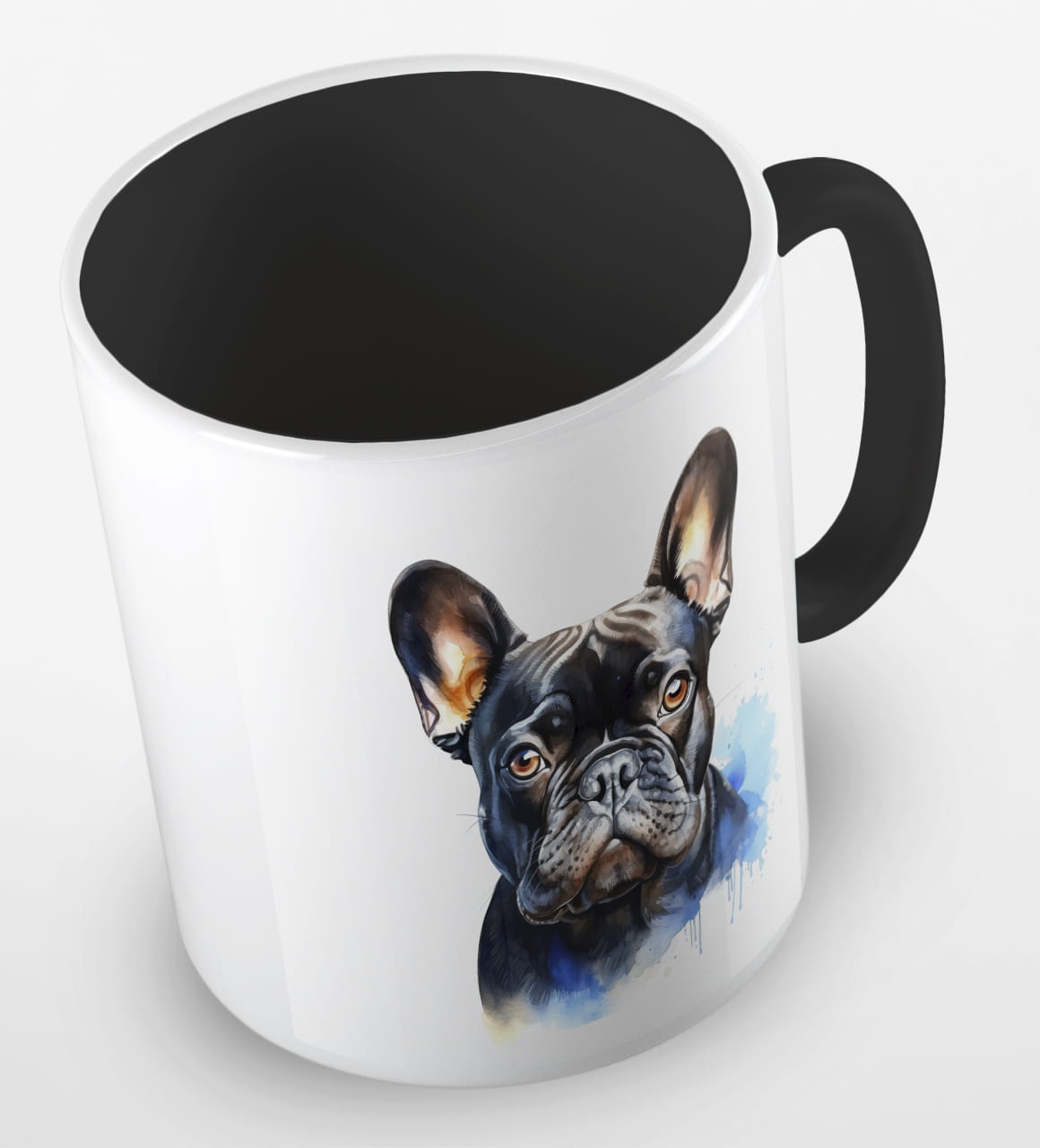 Kubek z wizerunkiem uroczego buldożka francuskiego. Taki piesek na kubeczku zrobi Ci dzień!