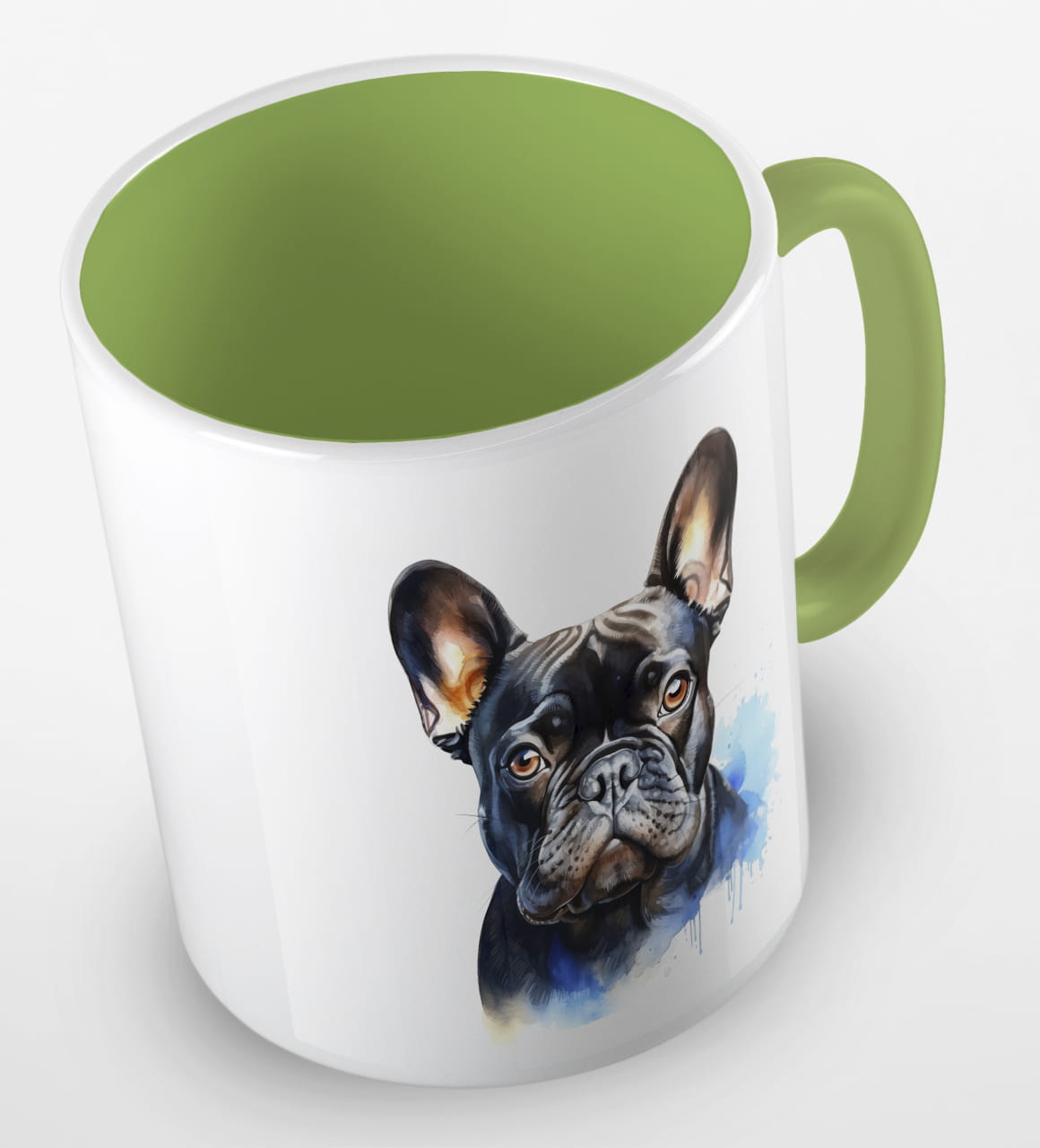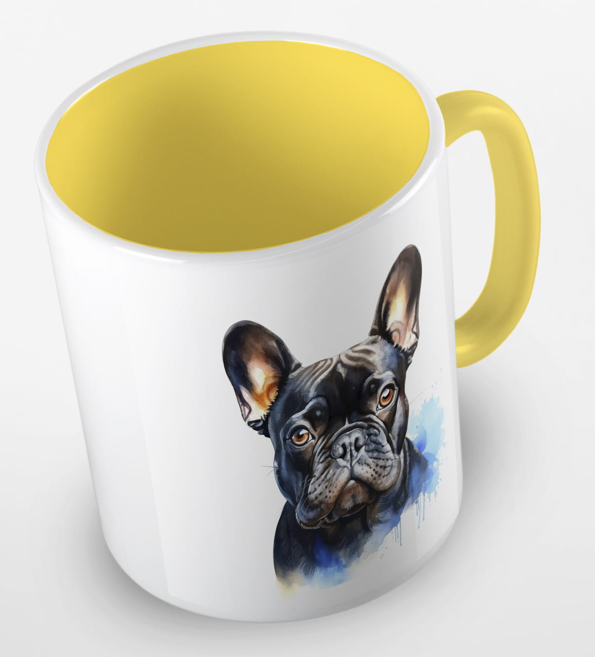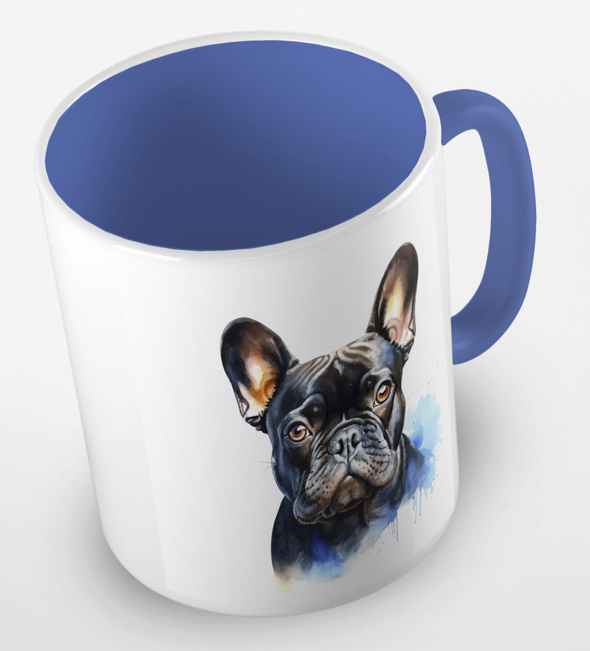 Kubek z wizerunkiem uroczego buldożka francuskiego. Taki piesek na kubeczku zrobi Ci dzień!
