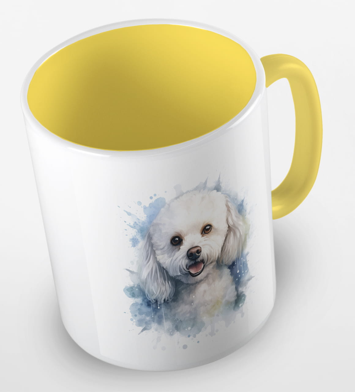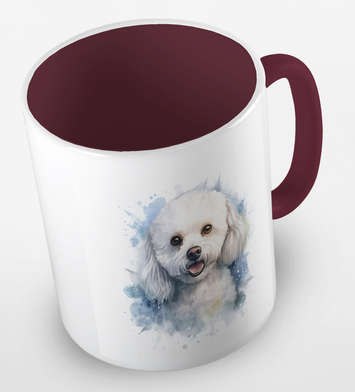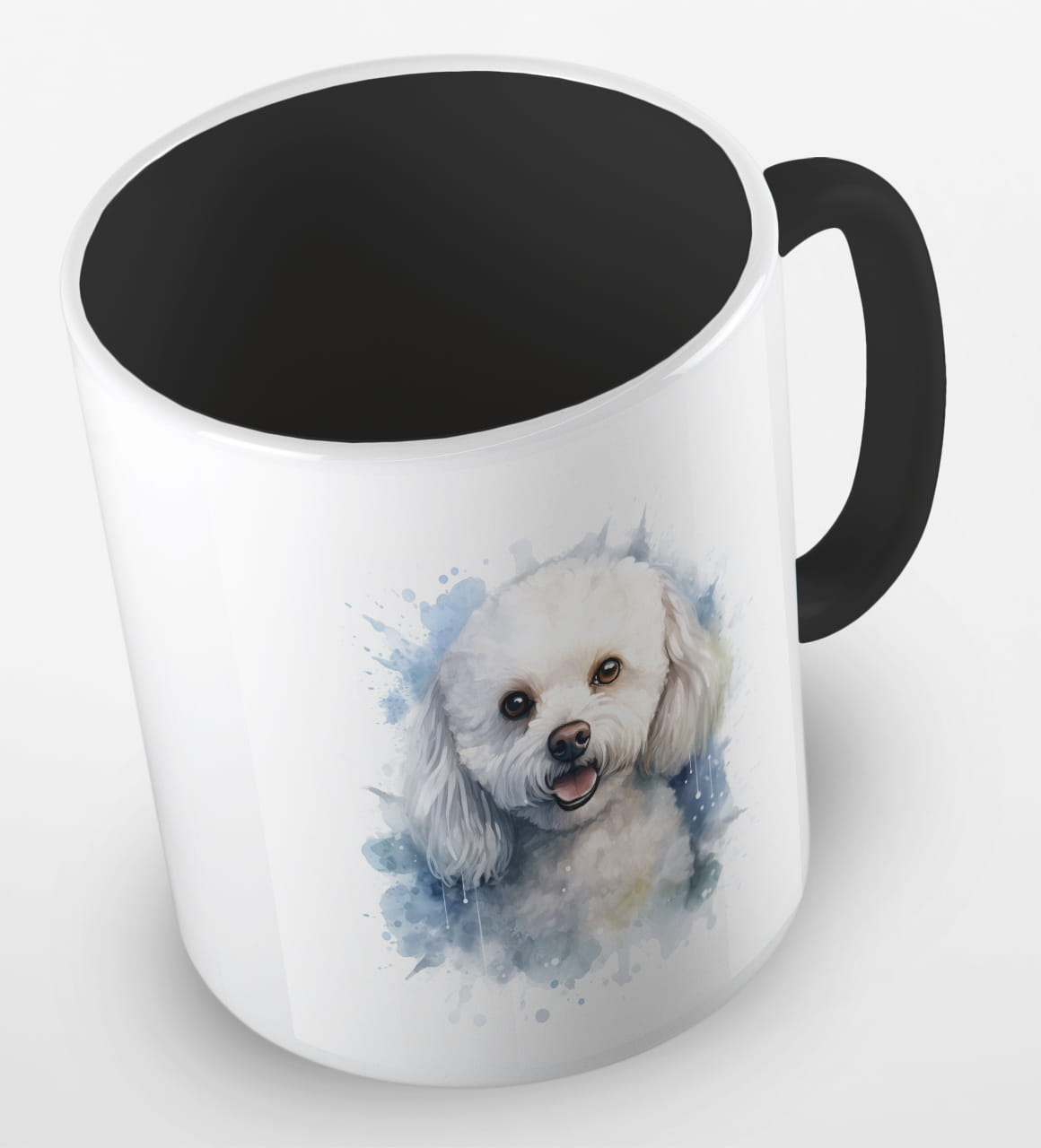 Kubeczek z uroczym pieskiem rasy coton de tulear. Portret małego, białego czworonoga poprawi humor każdemu, kto będzie sięgał po kubek kawy i herbaty z samego rana.