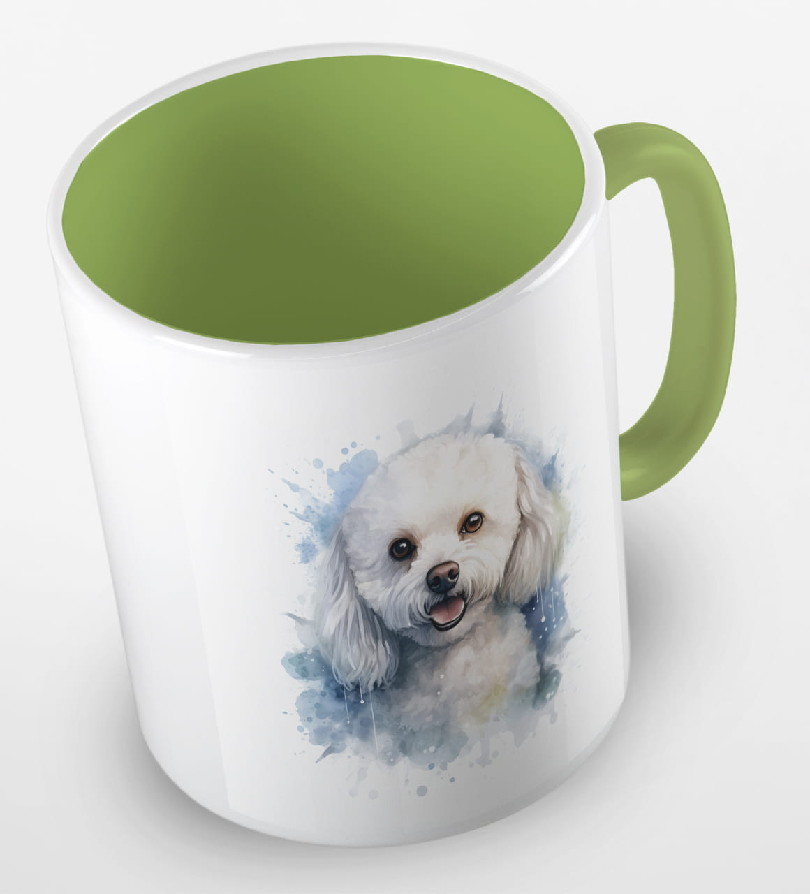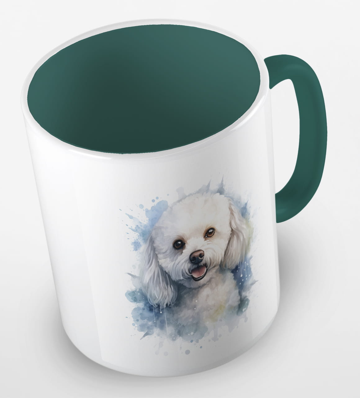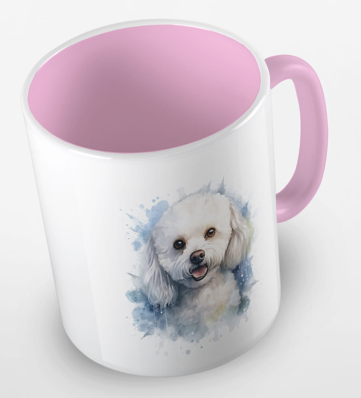 Kubeczek z uroczym pieskiem rasy coton de tulear. Portret małego, białego czworonoga poprawi humor każdemu, kto będzie sięgał po kubek kawy i herbaty z samego rana.