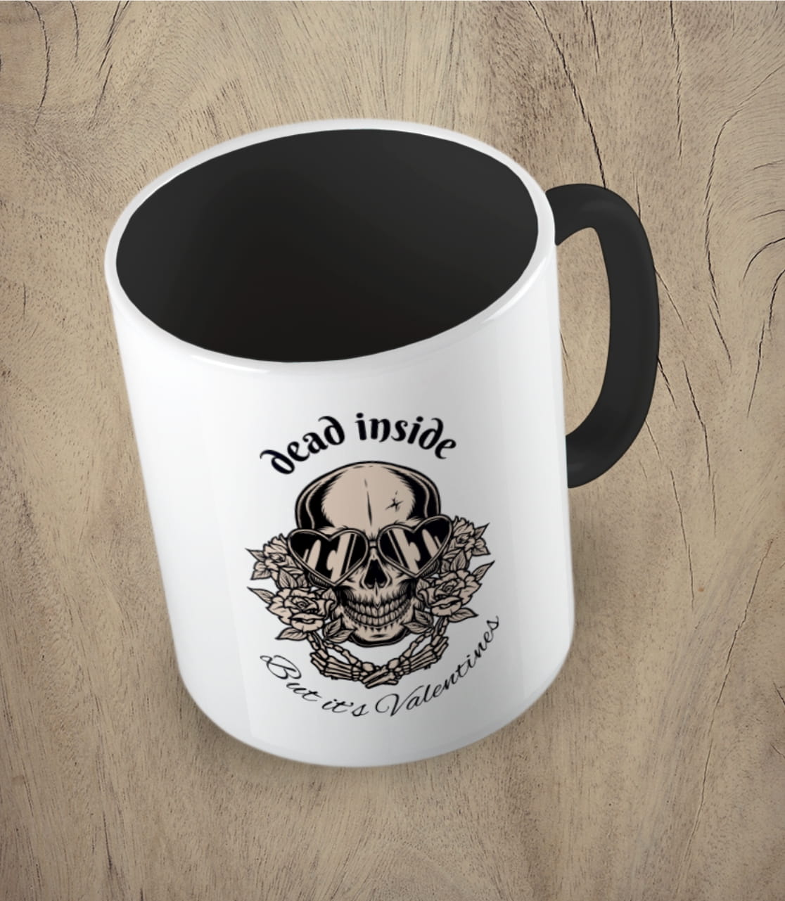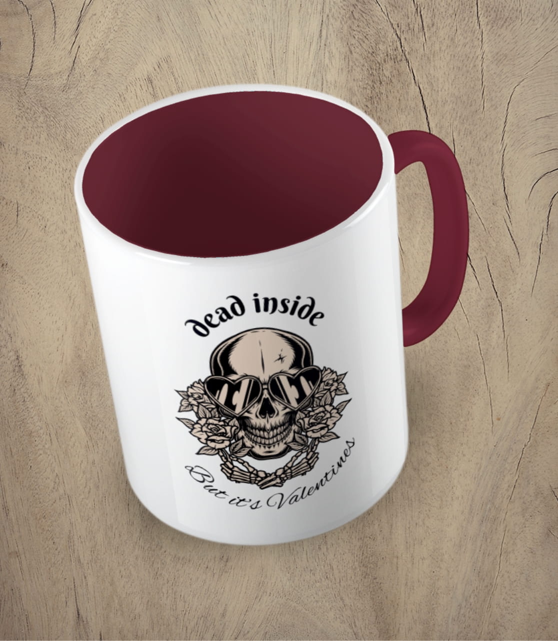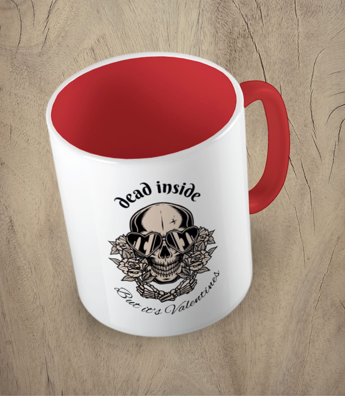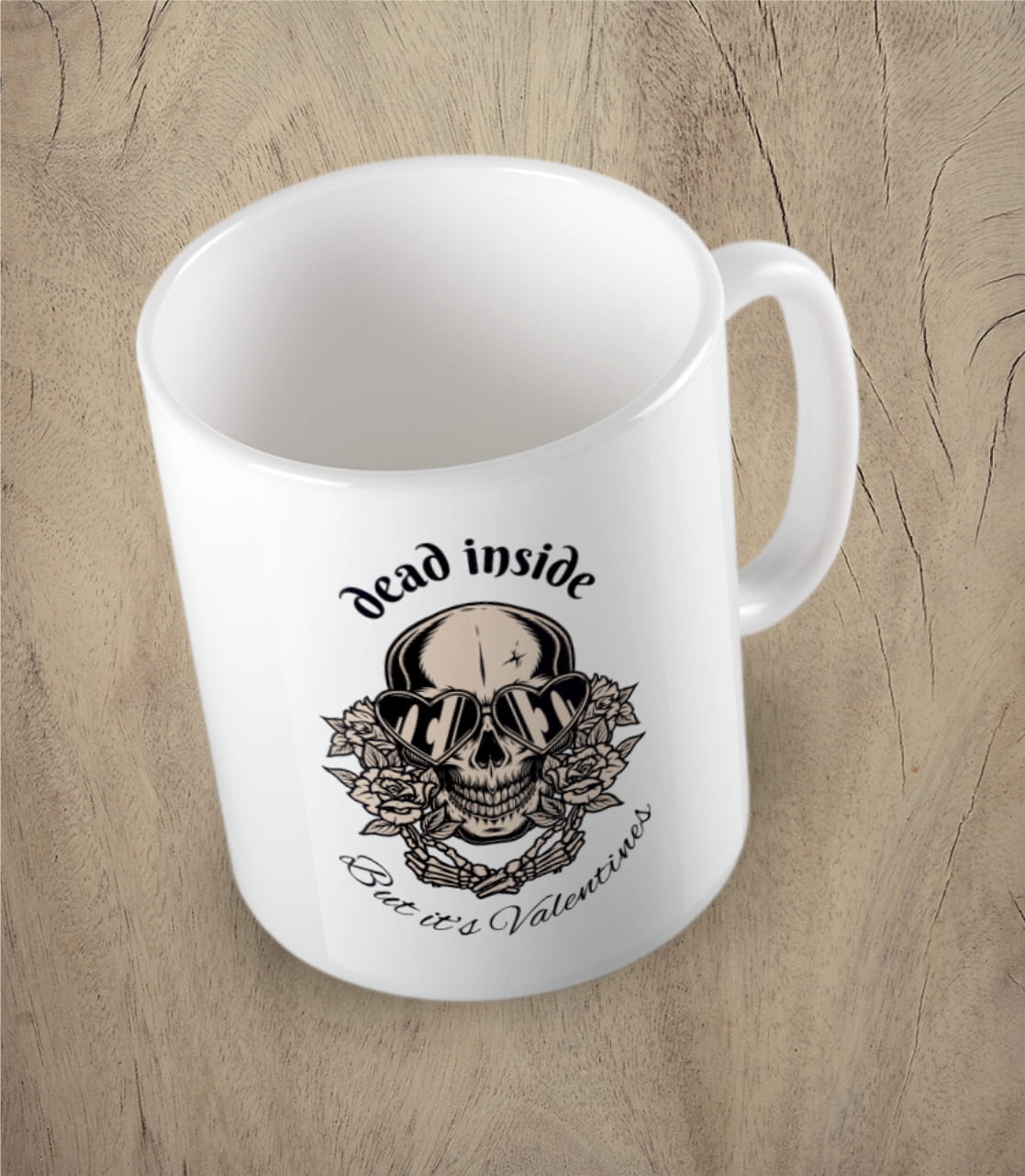 Zabawny kubek dla przeciwników Walentynek. Kubek na prezent z napisem "dead inside but it's Valentines".