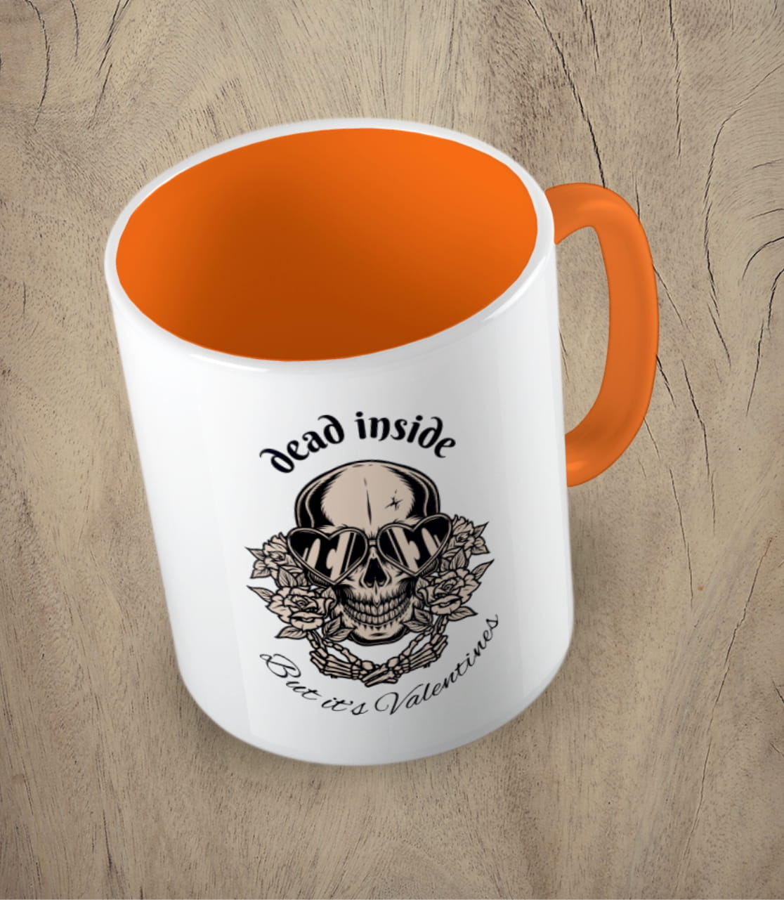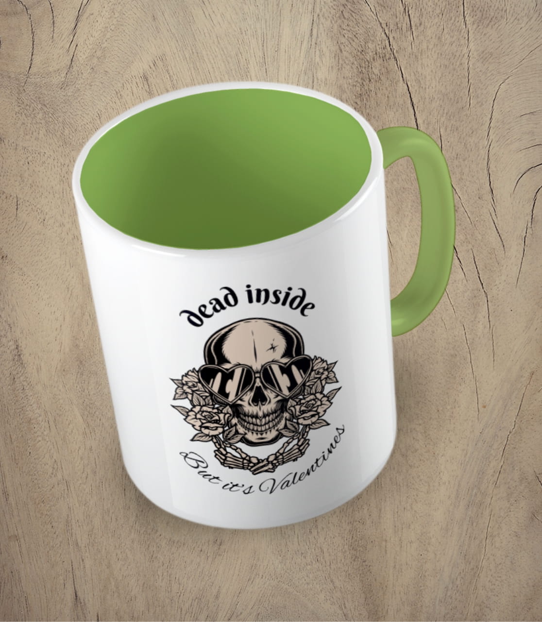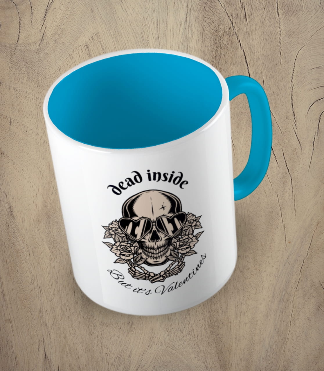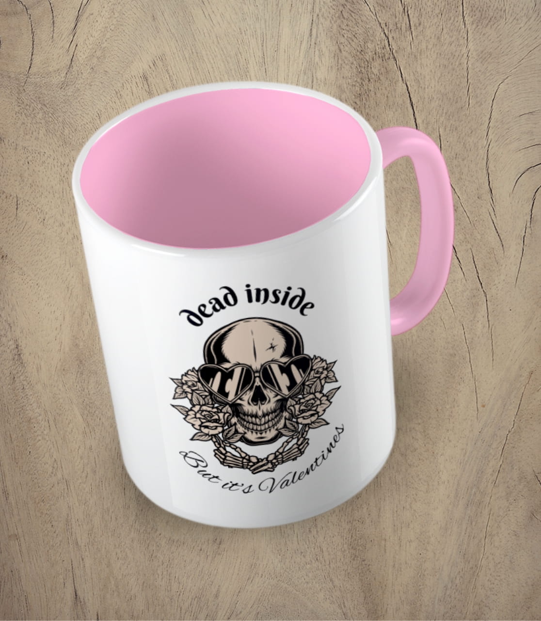 Zabawny kubek dla przeciwników Walentynek. Kubek na prezent z napisem "dead inside but it's Valentines".