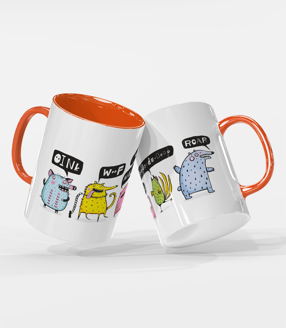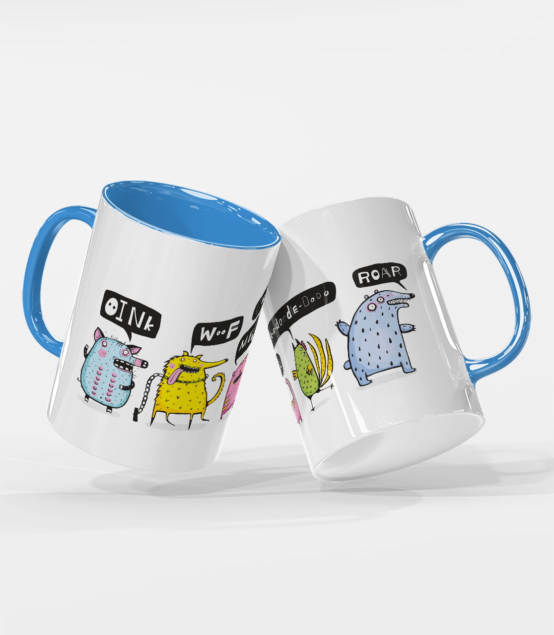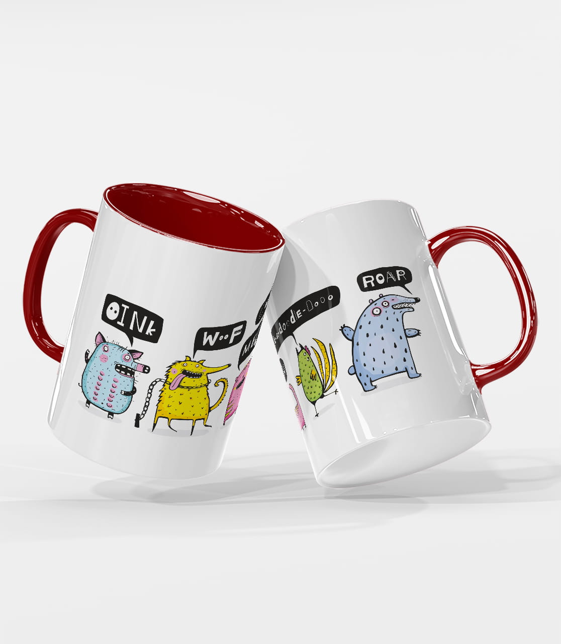 Nasze kubki z kolorowym uchem i środkiem są wykonane z ceramiki. Mają wysoką białość i są pokryte specjalną powłoką, JS Coating, która przedłuża trwałość nadruku. Dzięki temu naczynia można myć w zmywarce. Kubeczki sprzedajemy w komplecie z kartonikiem, który pozwala zaprezentować nadruk bez otwierania pudełka. Nadruk jest wykonywany po obu stronach kubeczka.