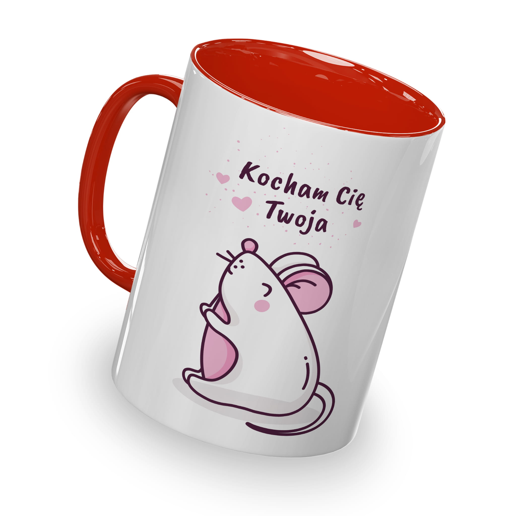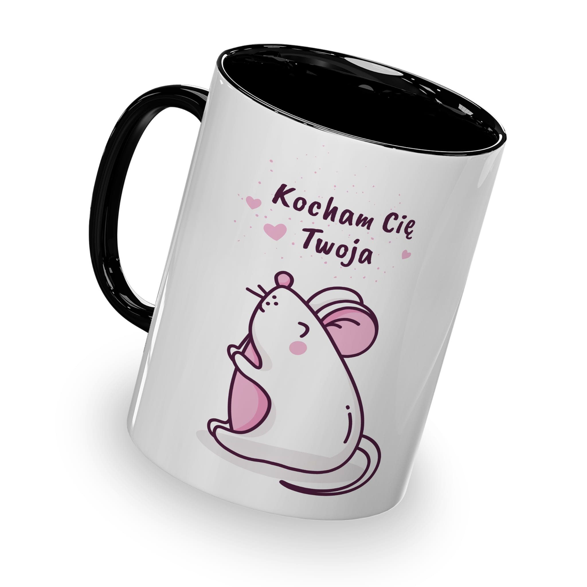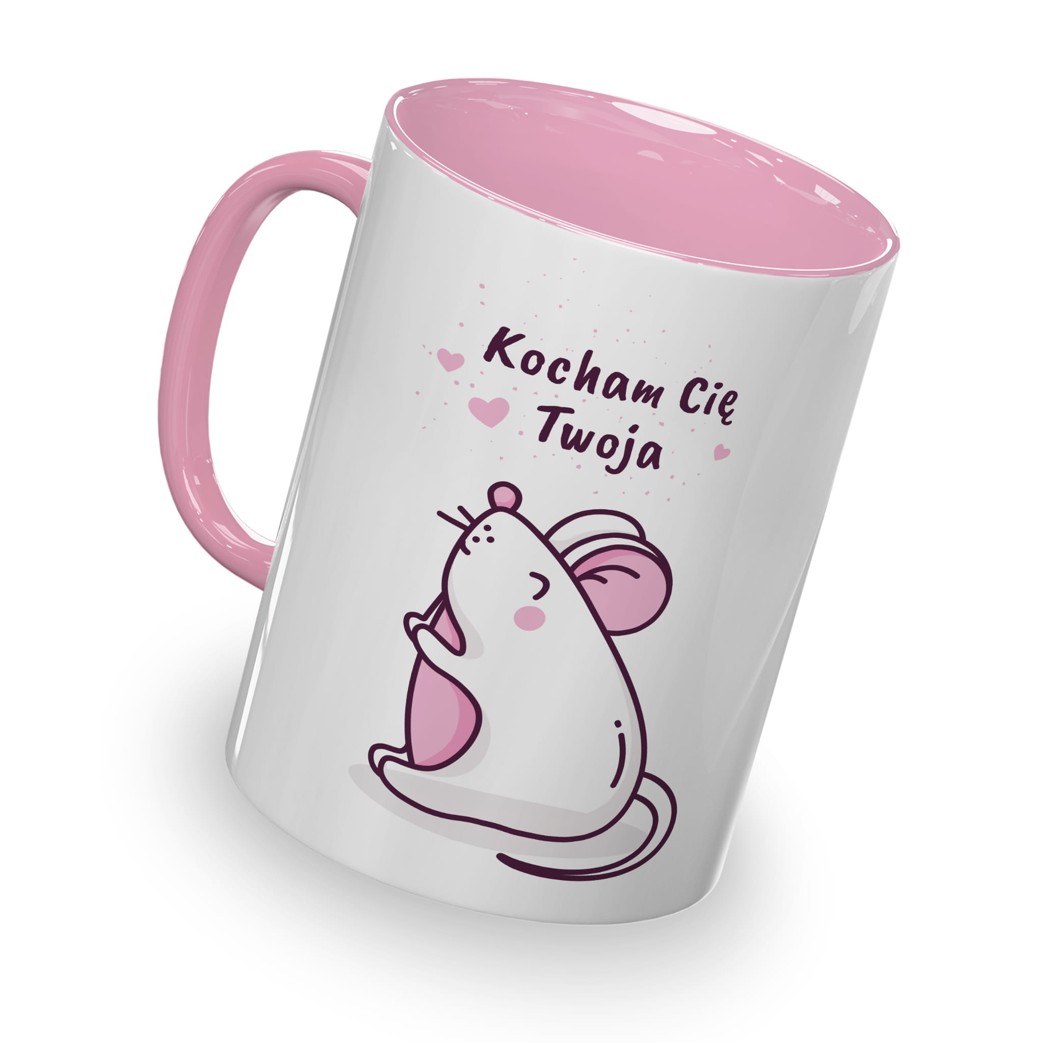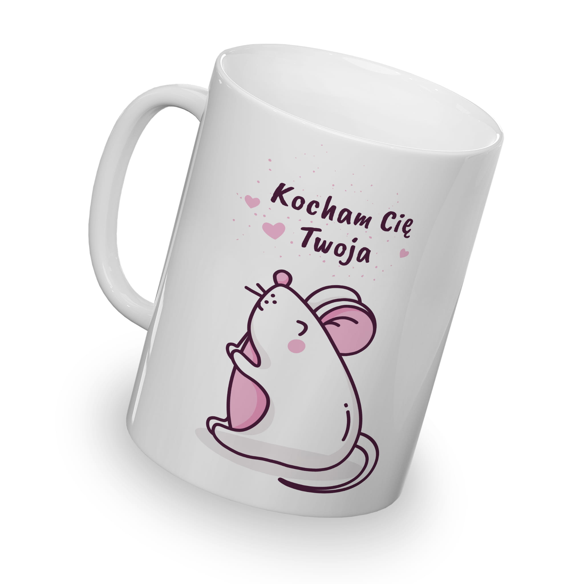 Uroczy kubeczek na prezent od dziewczyny,  żony, partnerki czy narzeczonej dla drugiej połówki. Kubeczek z myszką i napisem "Kocham cię".