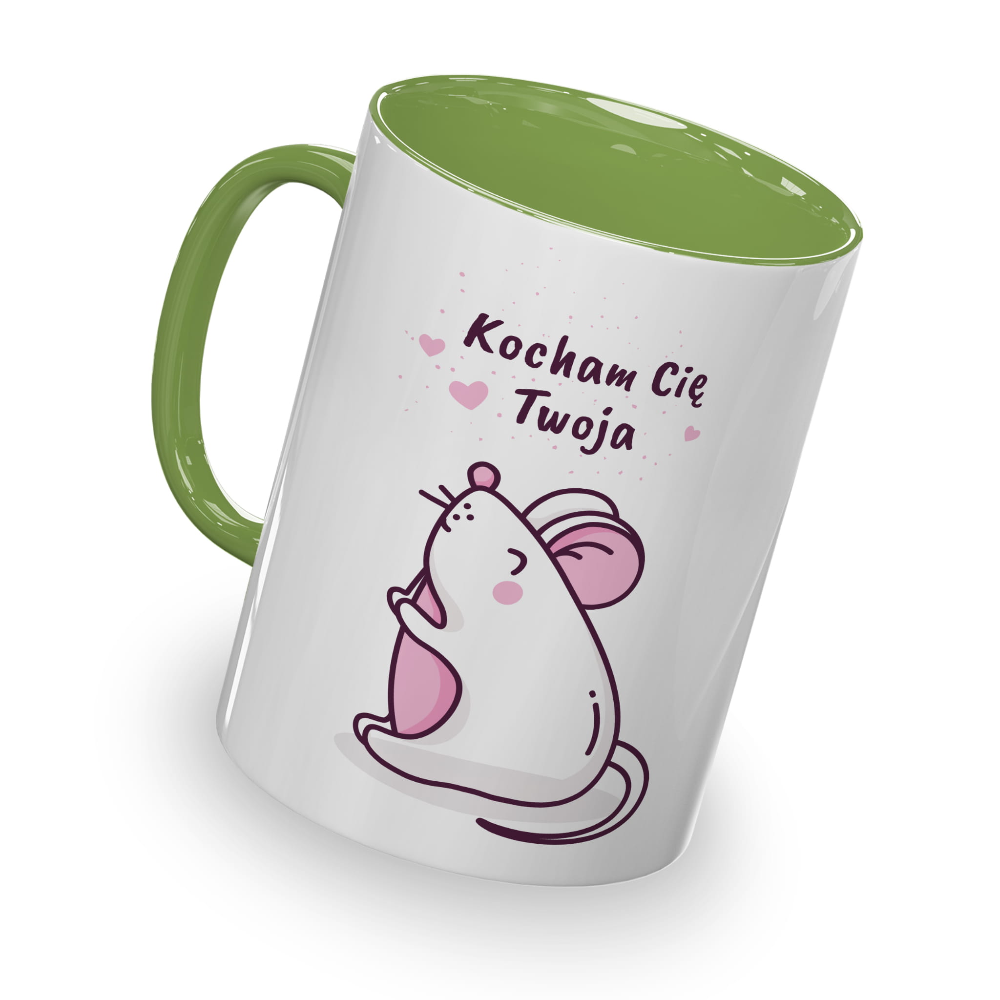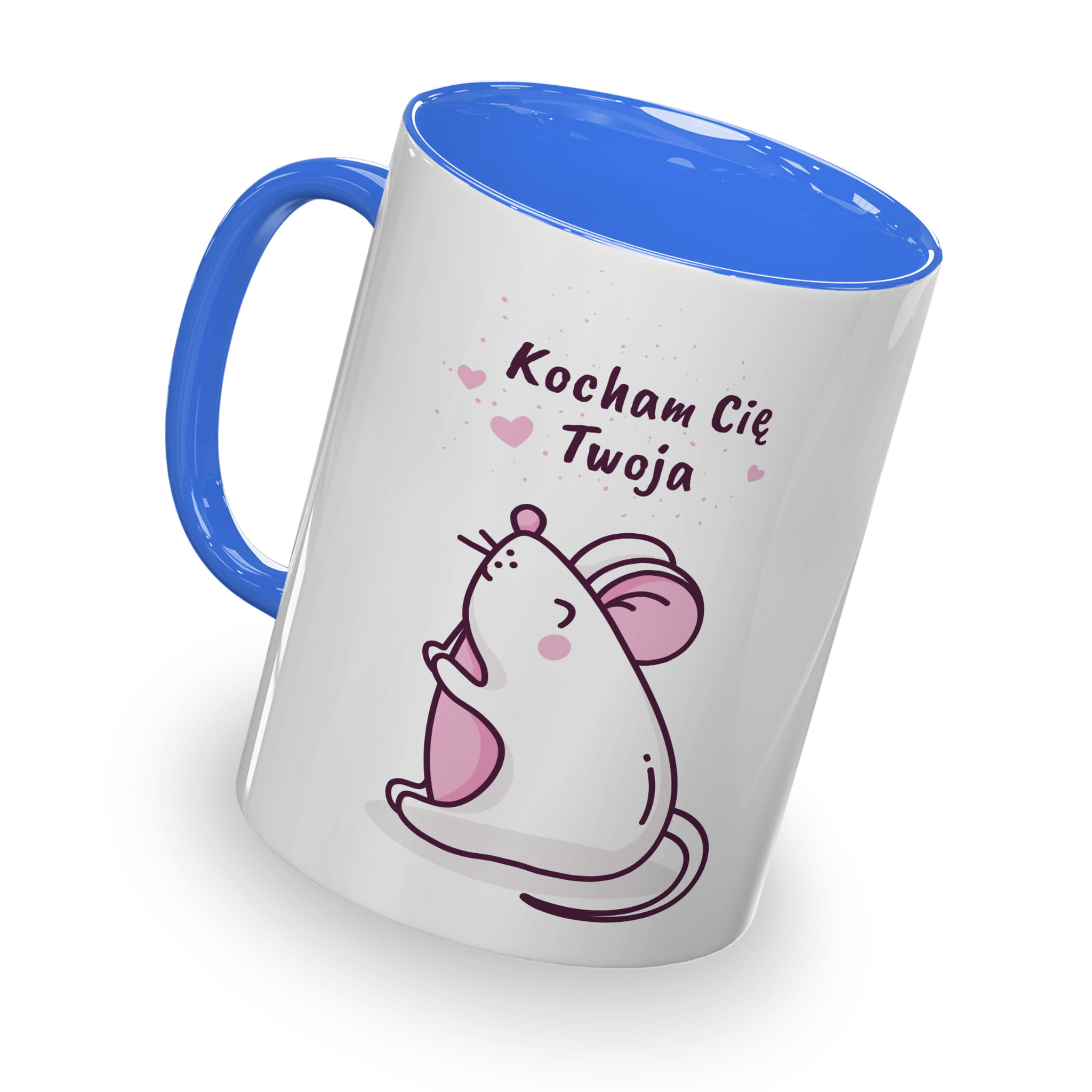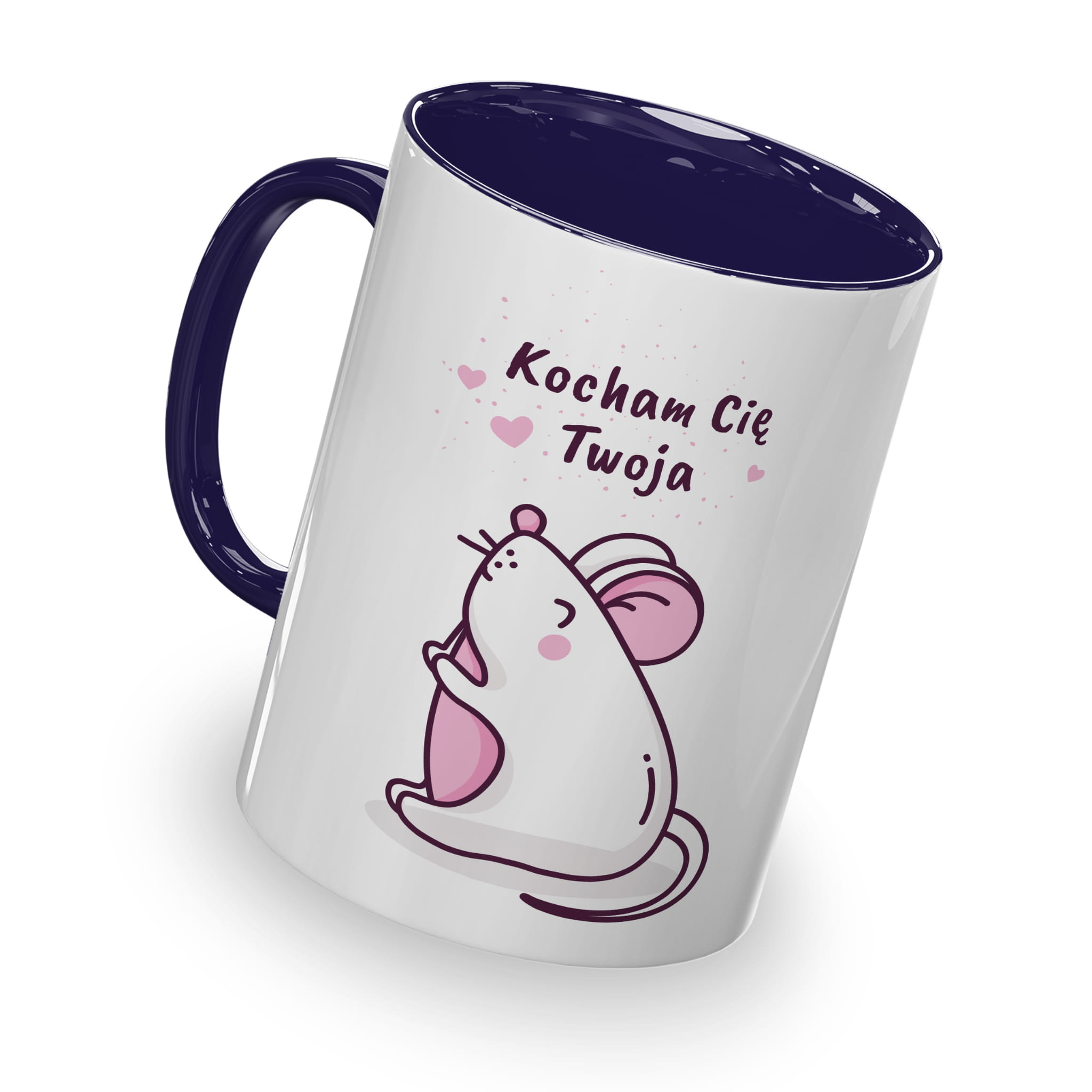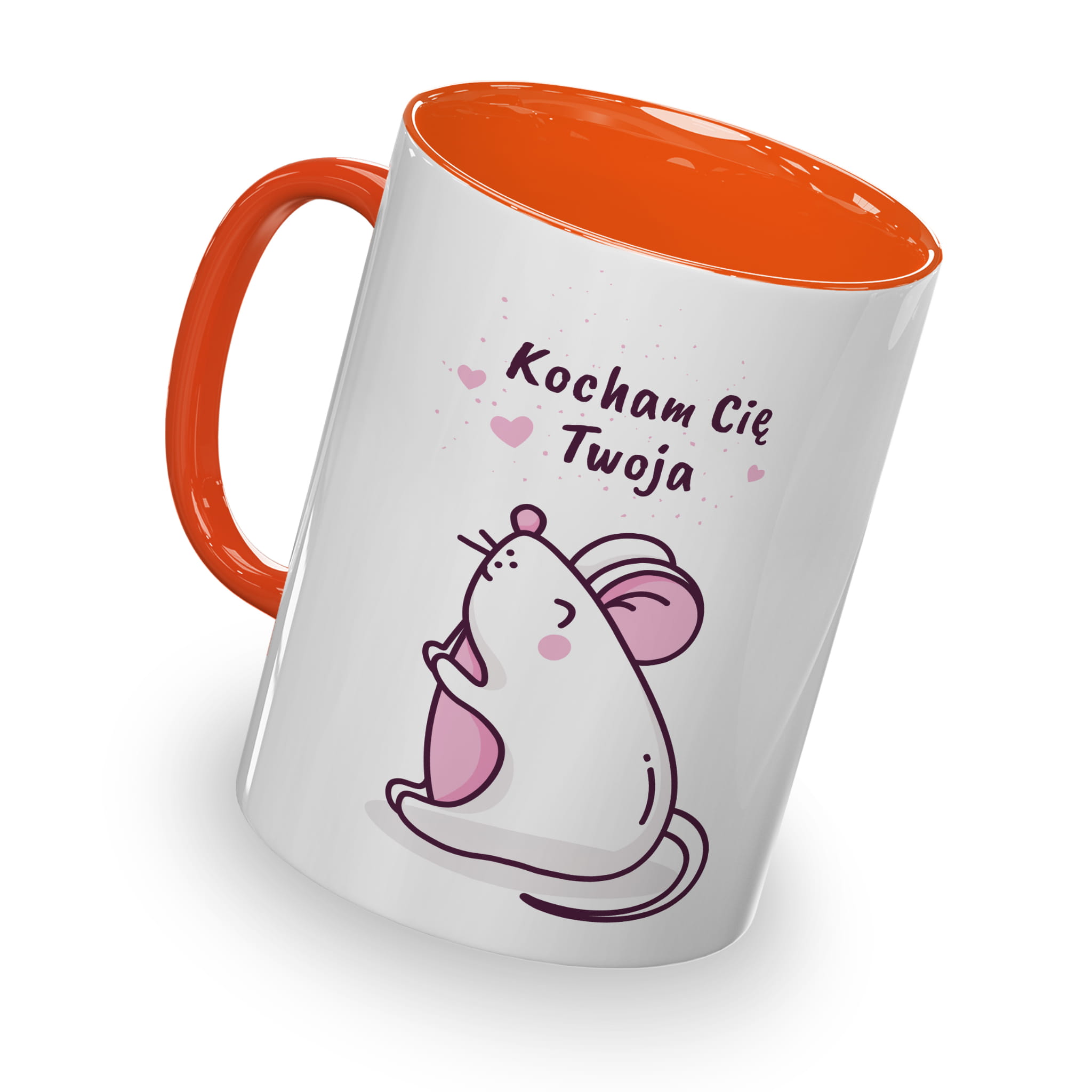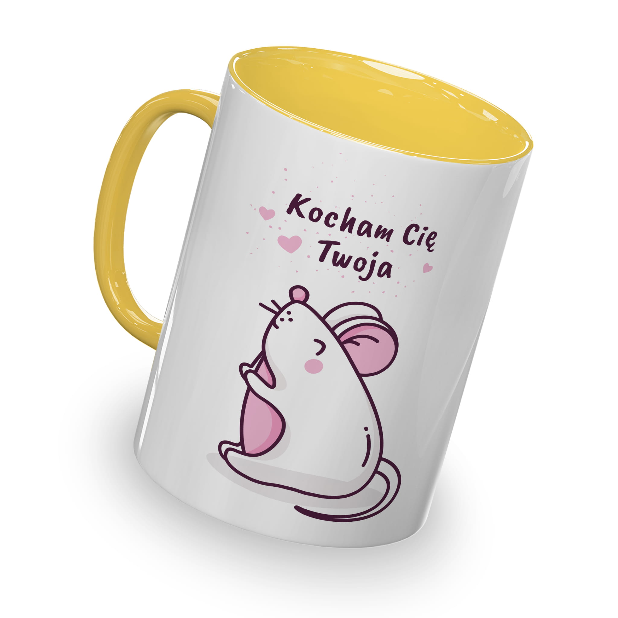 Uroczy kubeczek na prezent od dziewczyny,  żony, partnerki czy narzeczonej dla drugiej połówki. Kubeczek z myszką i napisem "Kocham cię".