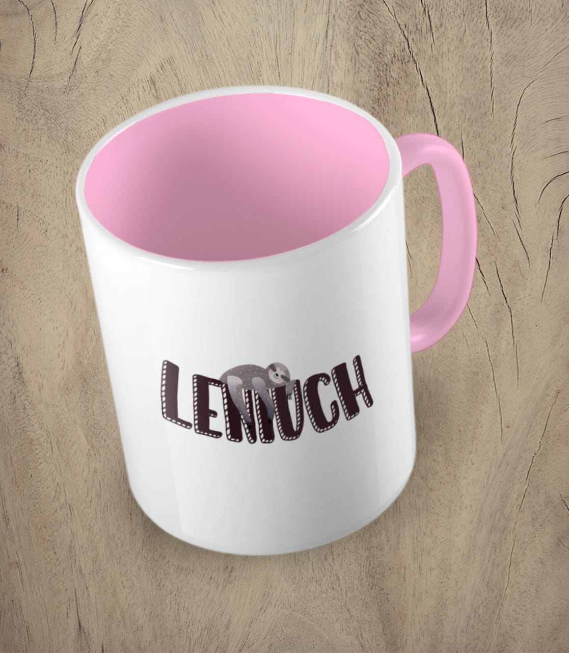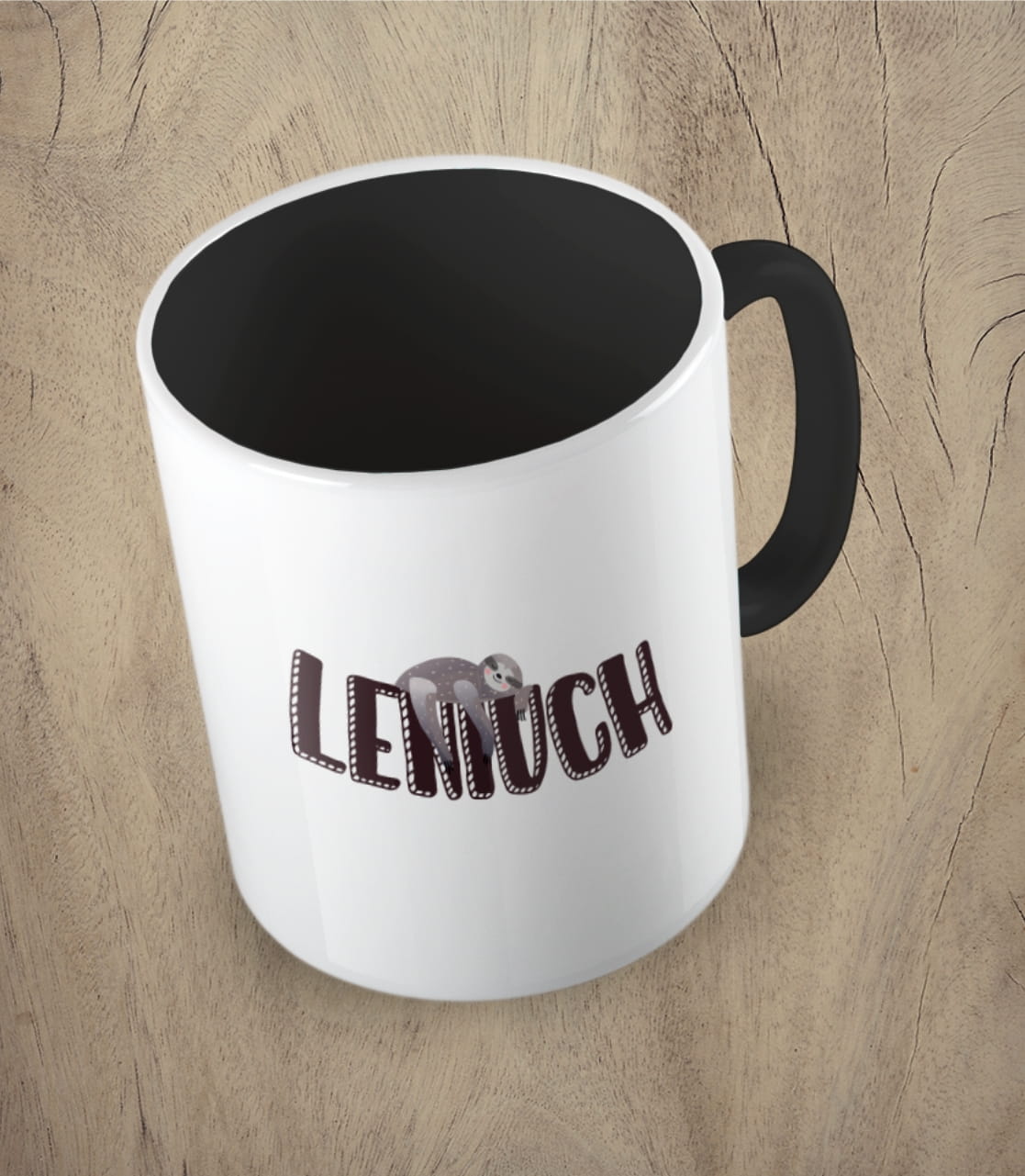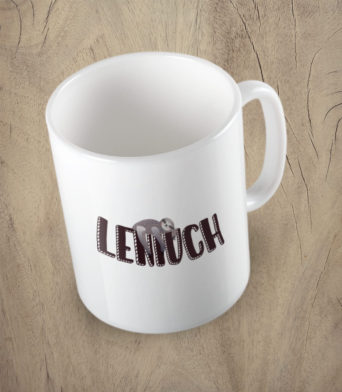 Zabawny kubeczek z leniwcem i napisem "leniuch". Sympatyczny prezent z przymrużeniem oka dla przyjaciela lub przyjaciółki.