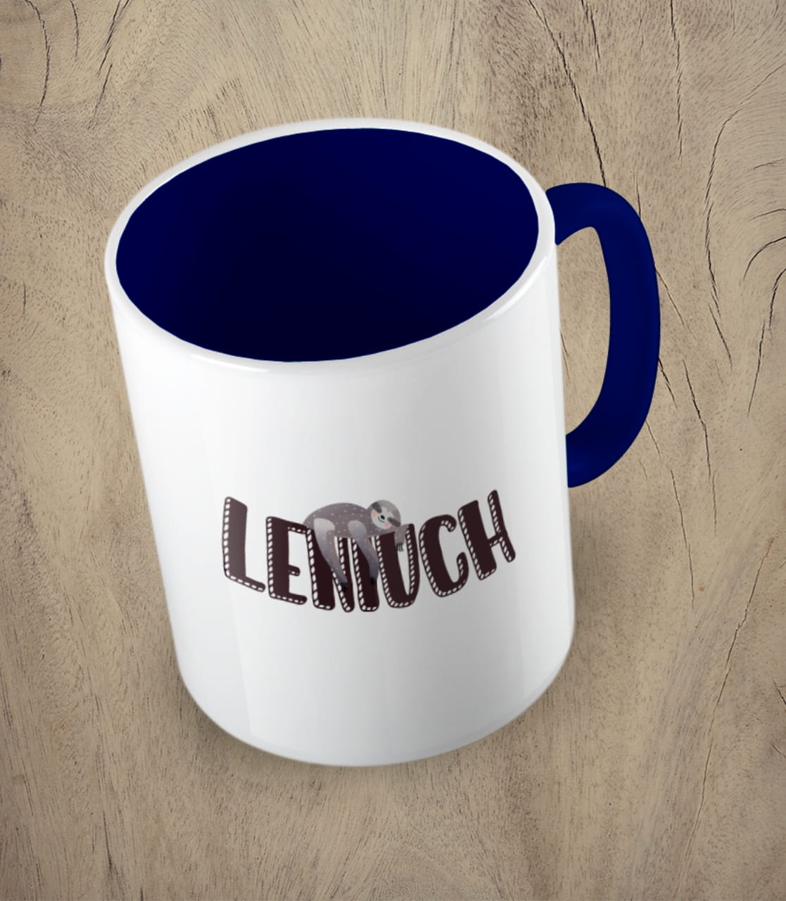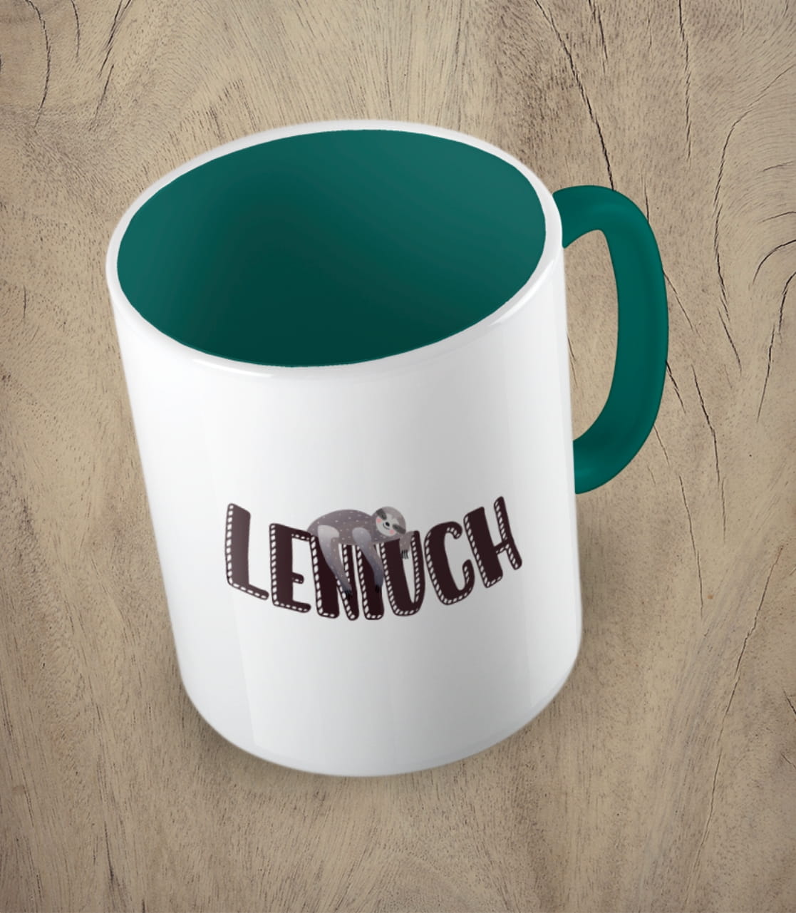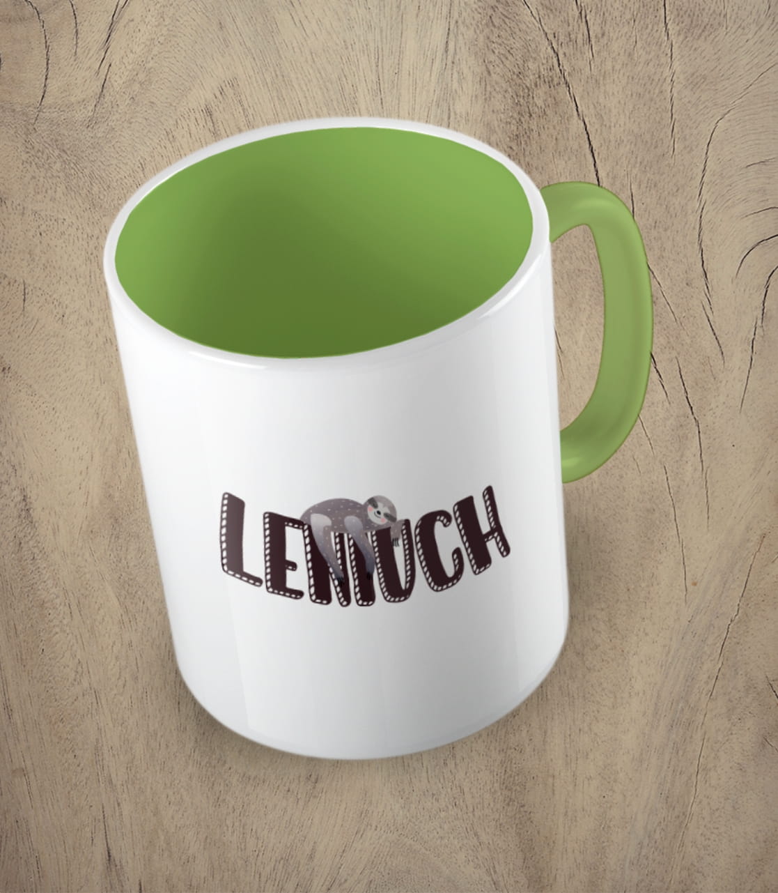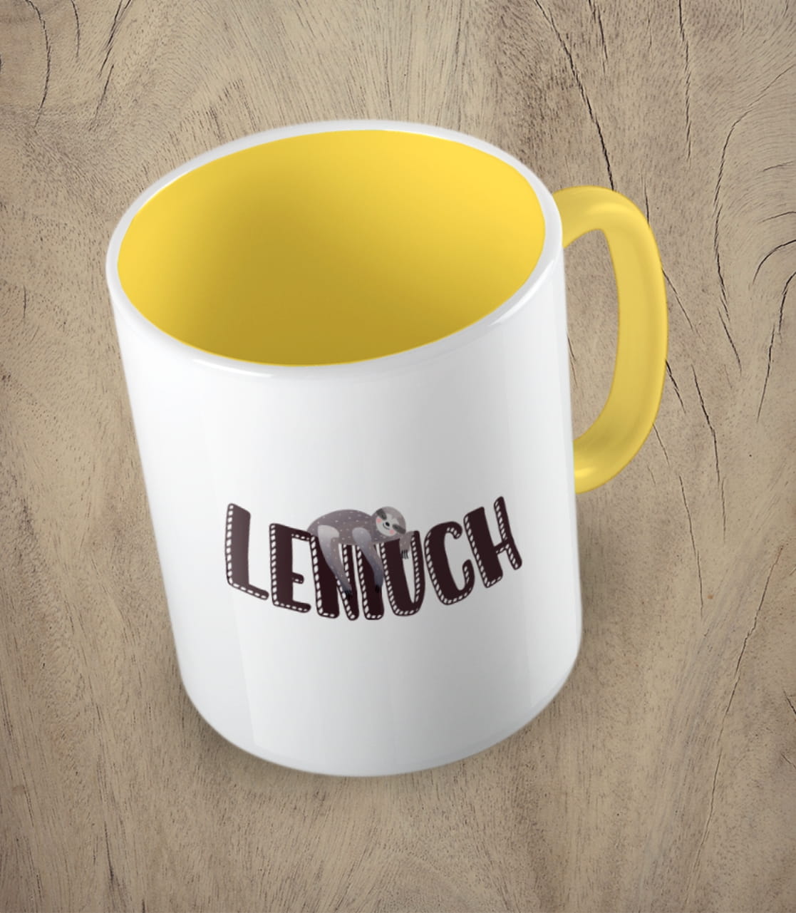Zabawny kubeczek z leniwcem i napisem "leniuch". Sympatyczny prezent z przymrużeniem oka dla przyjaciela lub przyjaciółki.
