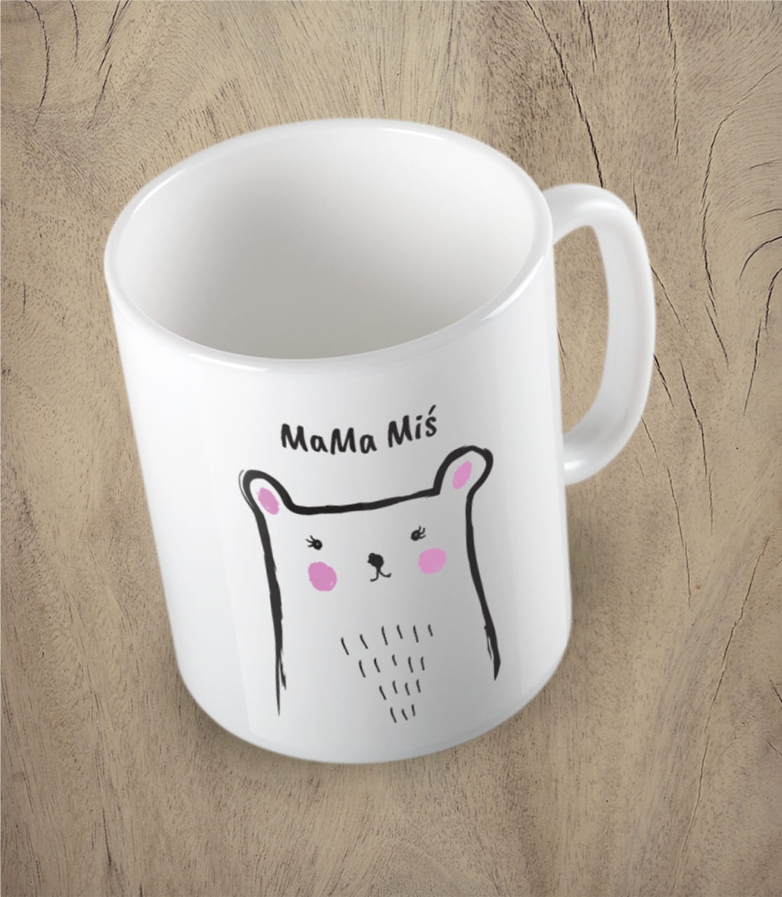 Słodki kubek dla mamy z nadrukowanym uroczym misiem. Kubeczek dla mamy będzie sympatycznym prezentem na dzień matki.