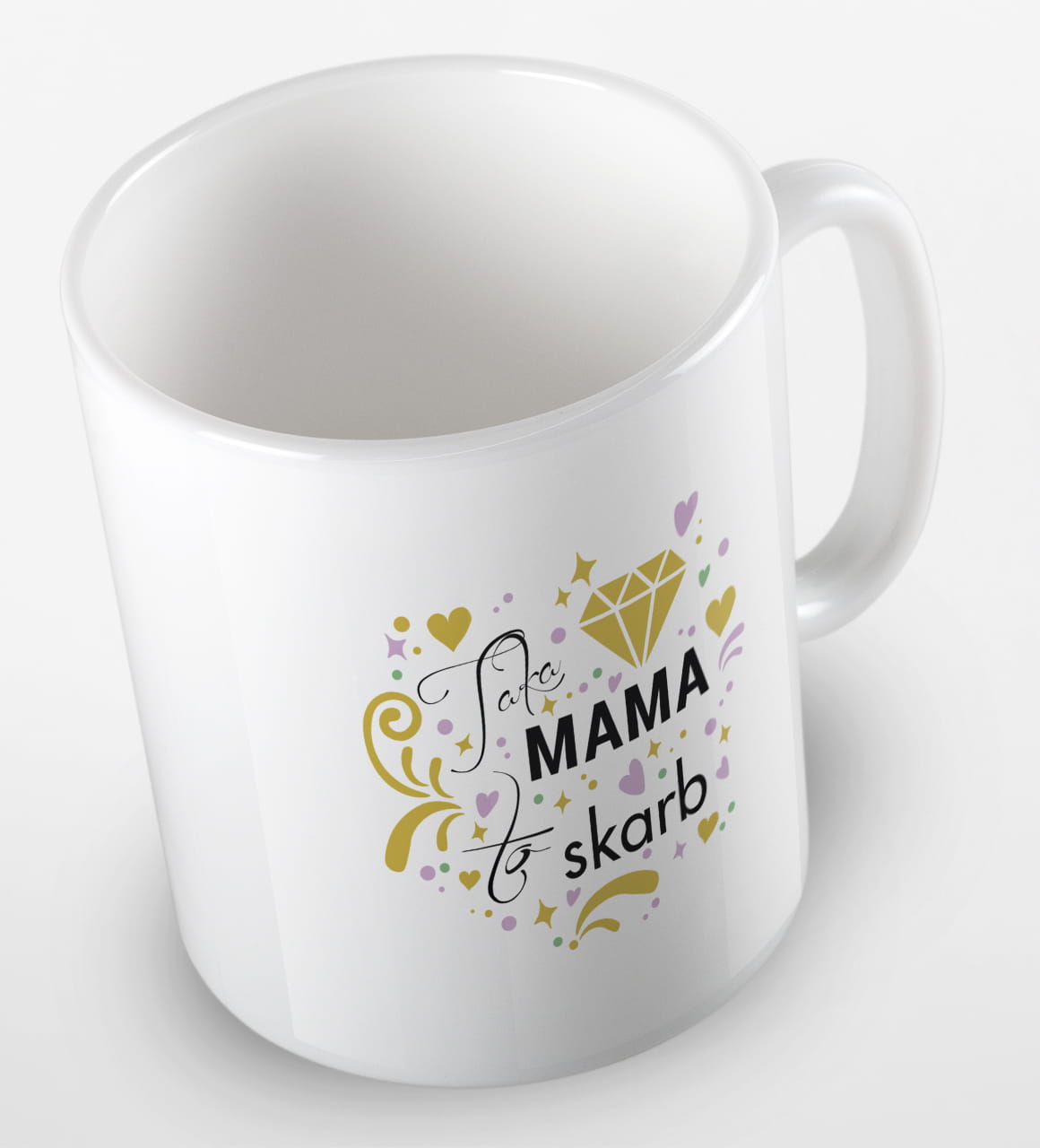Uroczy kubek ze słodkim wzorem, który sprawi, że każdej mamie zakręci się łezka w oku, kiedy będzie pić z niego ulubioną kawę czy herbatę.