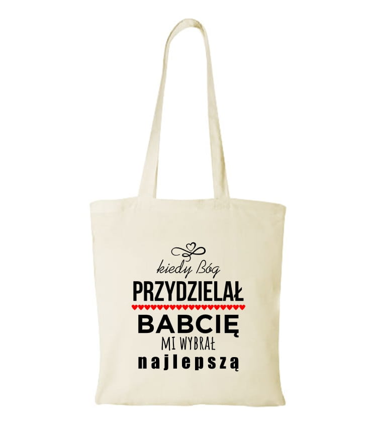 Torba na zakupy - prezent na dzień babci, który sprawi jej ogromną radość dzięki sentencji "kiedy Bóg przydzielał babcię mi wybrał najlepszą".