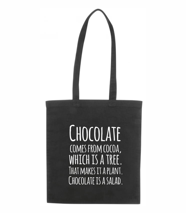 Torba bawełniana na zakupy, która zawsze usprawiedliwi zakup tabliczki czekolady.