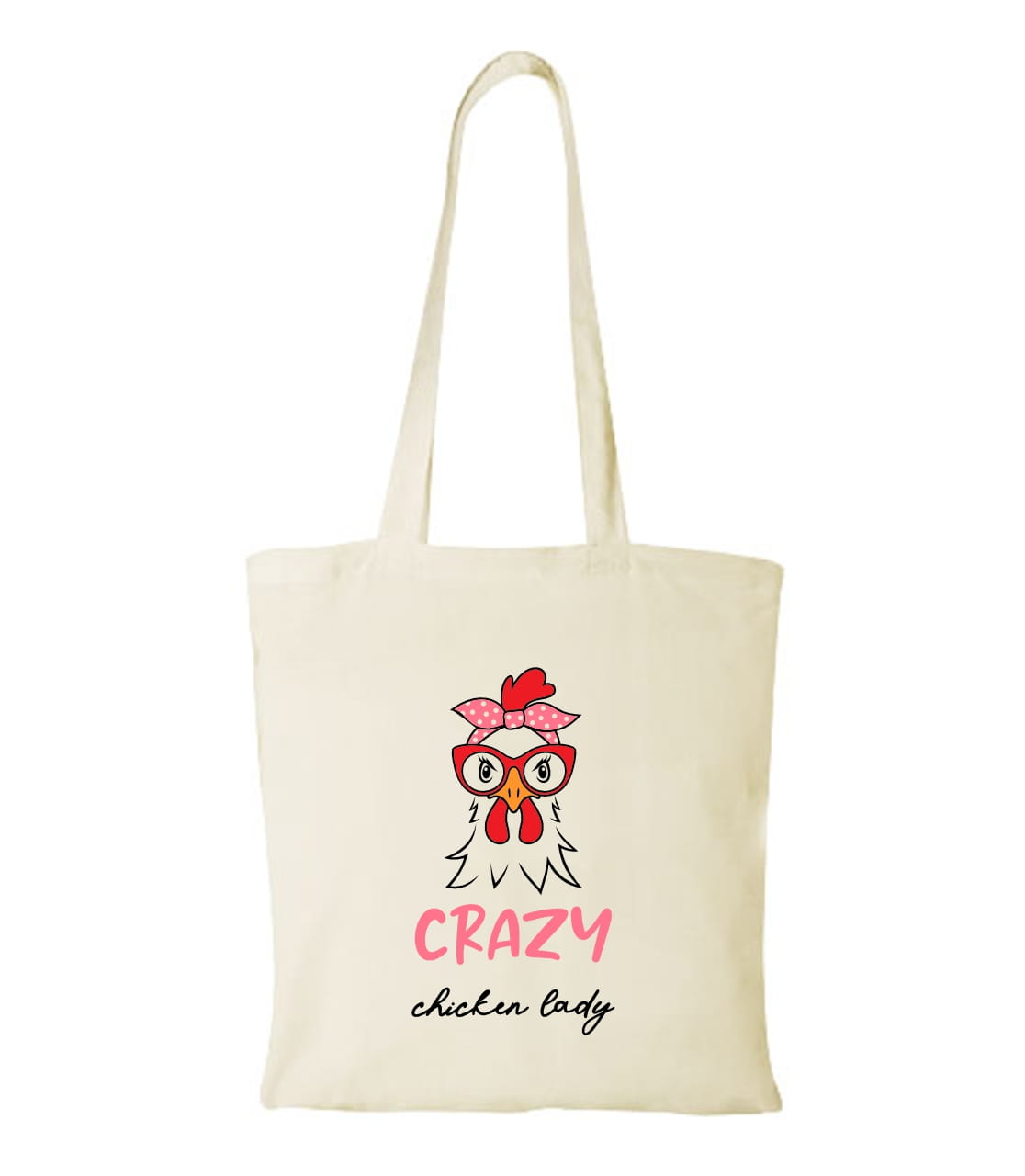 Bawełniana torebka na zakupy z zabawną kurą, która z pewnością przykuje uwagę każdego. Kwoka - okularnica w stylu pin-up girl to ciekawy akcent w codziennej stylizacji.