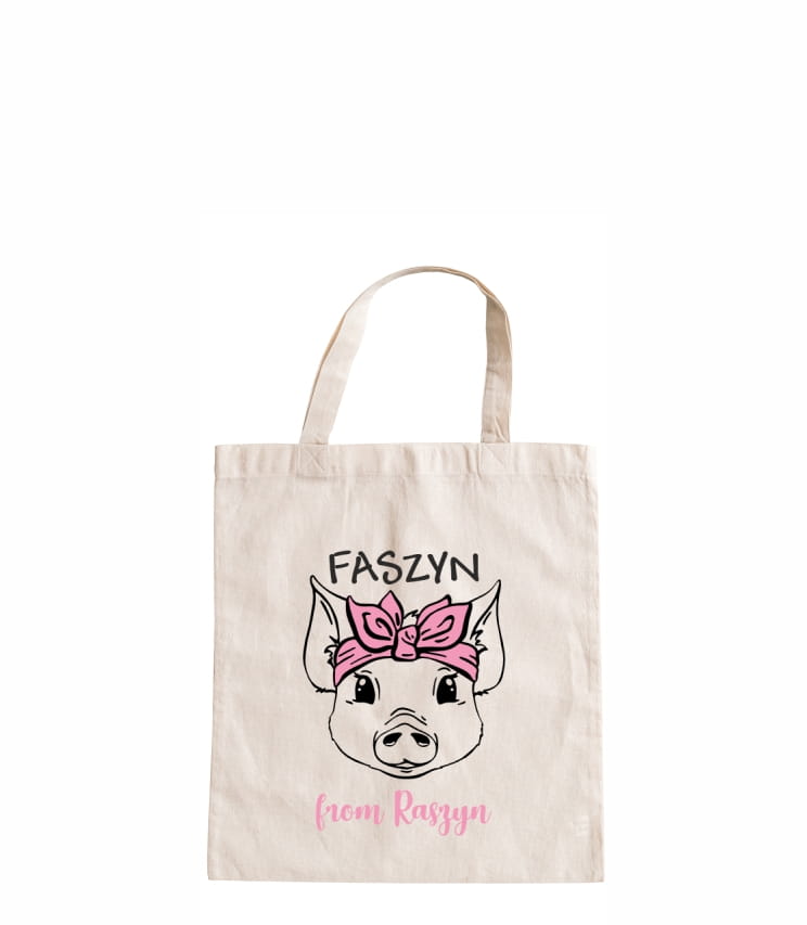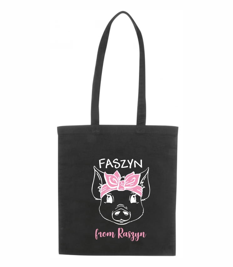 Torebka na zakupy z zabawnym hasłem "faszyn from Raszyn" będzie prawdziwą ozdobą każdego outfitu.