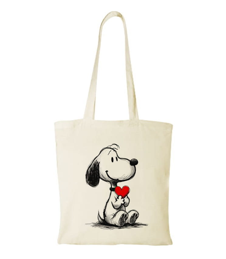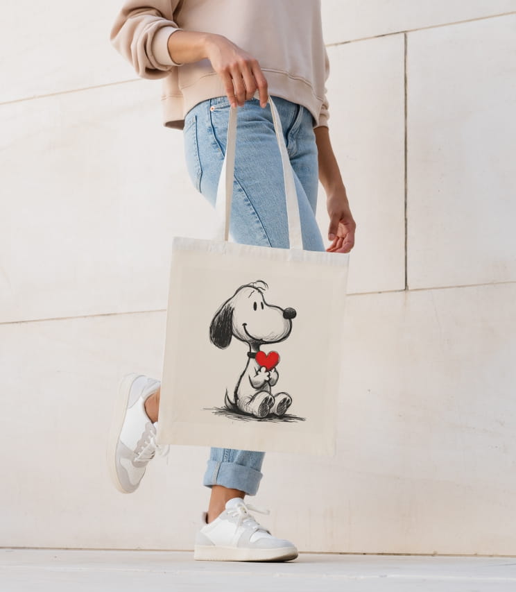 Bawełniana torebka ze słodkim pieskiem i serduszkiem, która może być uroczym prezentem dla ukochanej osoby.