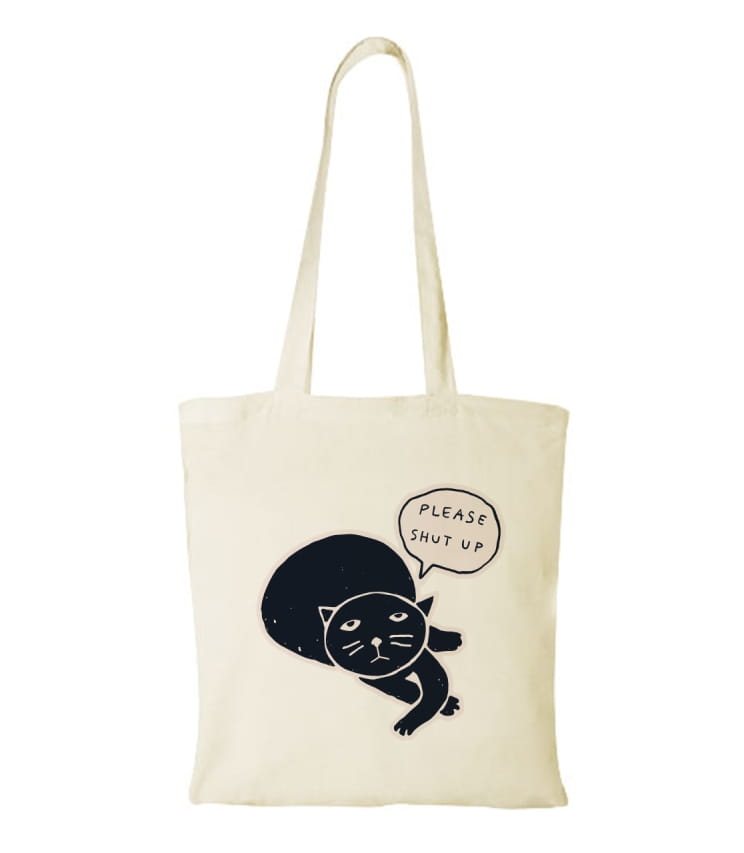 Bawełniana torba na zakupy z bezkompromisowym czarnym kotem, który marzy o odrobinie spokoju. Prezent idealny dla kociarzy i nie tylko.