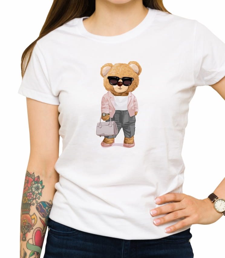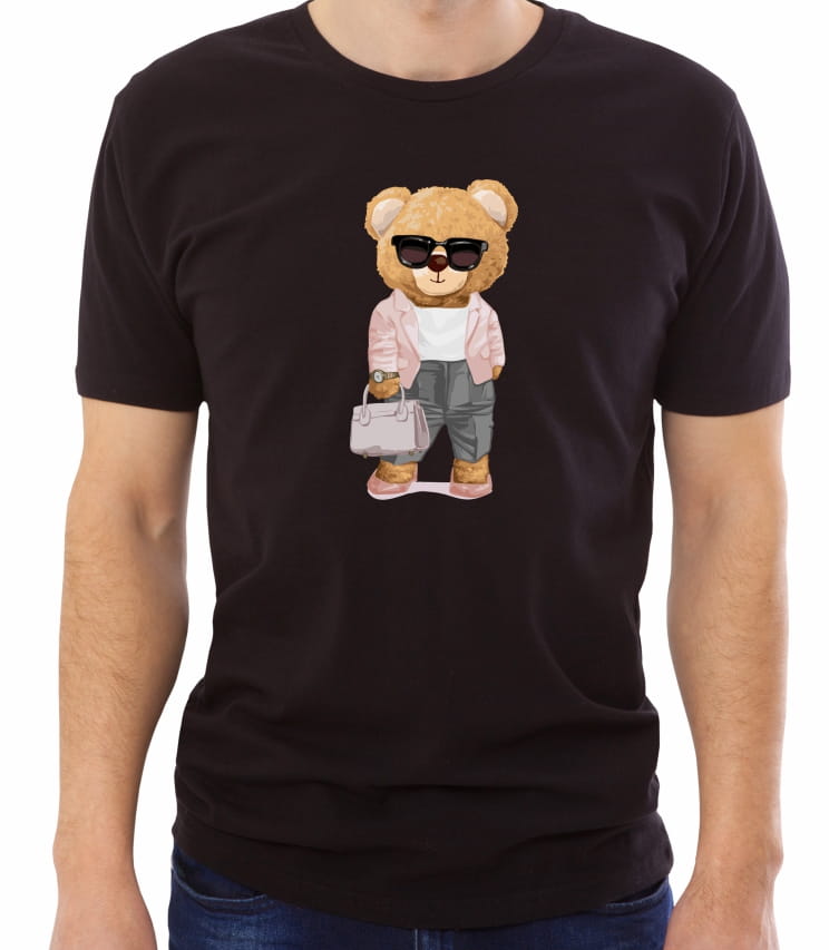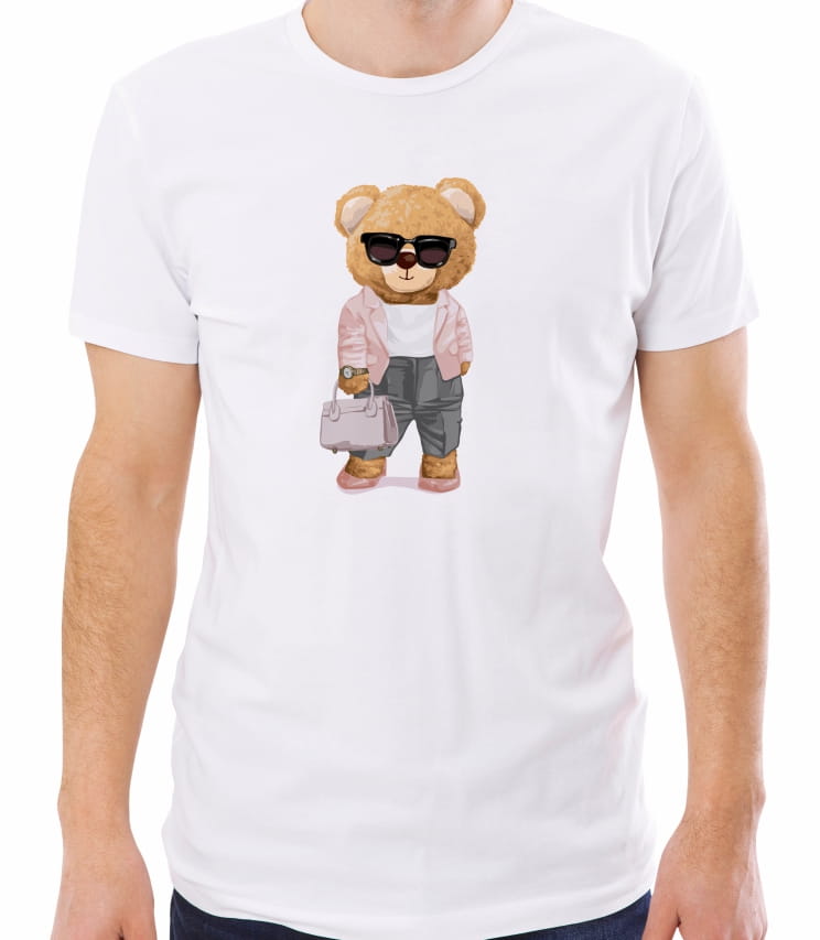 Zabawny T-shirt z niezwykle stylowym pluszowym misiem w ciemnych okularach.