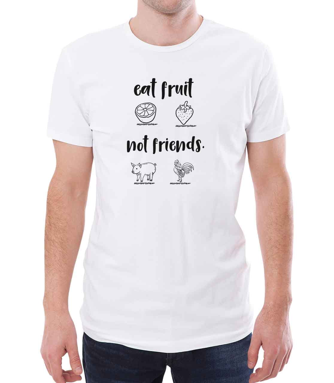 T-shirt z pro-zwierzęcym hasłem jedz owoce, nie przyjaciół.