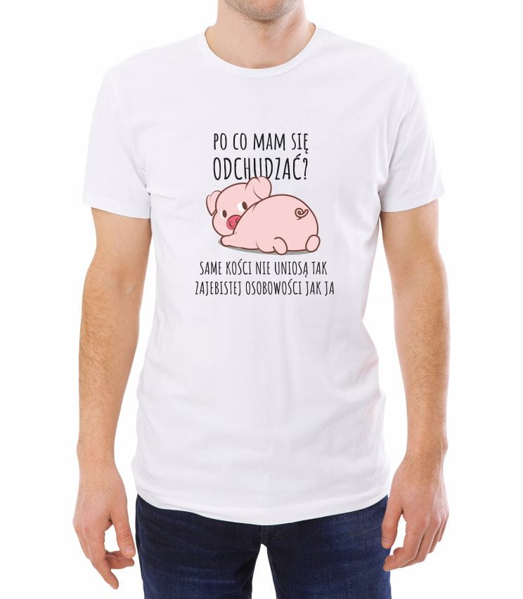 Koszulka ze świnką i zabawnym nadrukiem dla przeciwników odchudzania.