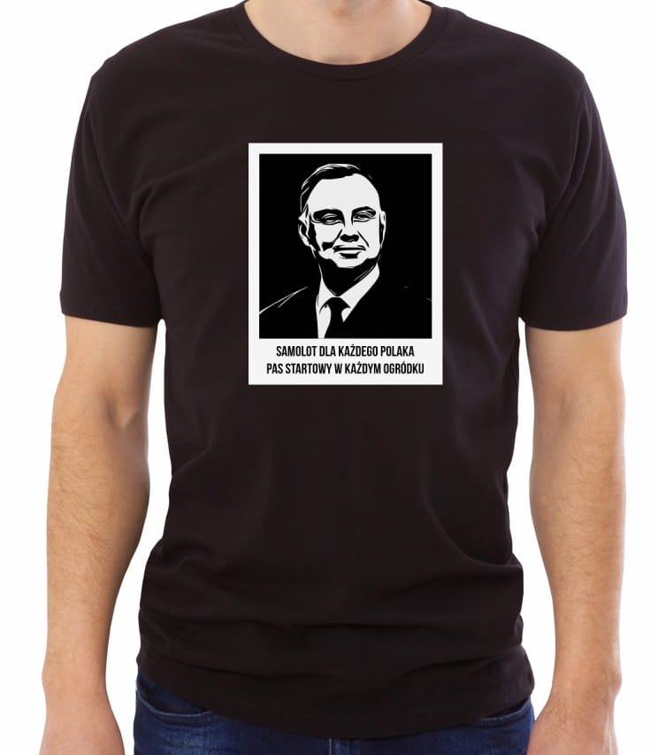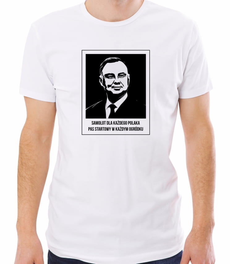 Zabawna koszulka z hasłem "Samolot dla każdego Polaka. Pas startowy w każdym ogródku". Idealna na prezent, jak i uzupełnienie własnej garderoby. Sprawdzi się w codziennych stylizacjach.