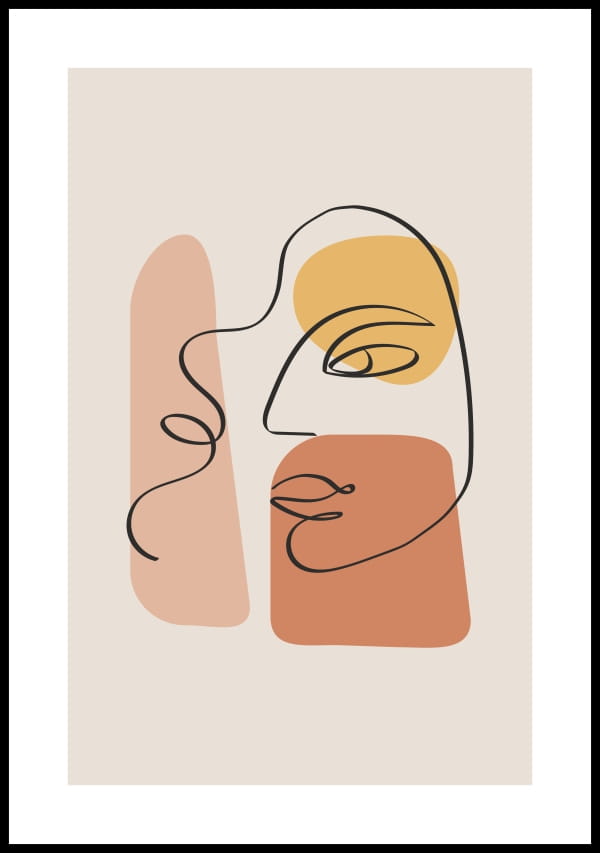 Delikatny beżowy graficzny plakat w stylu line art. Grafika nada wnętrzu ciepłego klimatu. Sprawdzi się świetnie we wnętrzach urządzonych minimalistycznie.