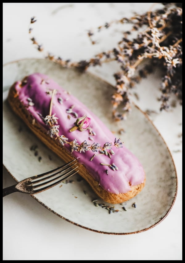 Plakat ze zdjęciem eklerka utrzymany w barwach lawendowych. Z pewnością będzie przyciągać wzrok i doda wnętrzu unikalnego charakteru. Ta uniwersalność sprawia, że jest to doskonały dodatek, niezależnie od tego, jaki styl preferujesz. Idealny do jadalni, kawiarni czy cukierni. Świetnie komponuje się z innymi plakatami z naszych propozycji.