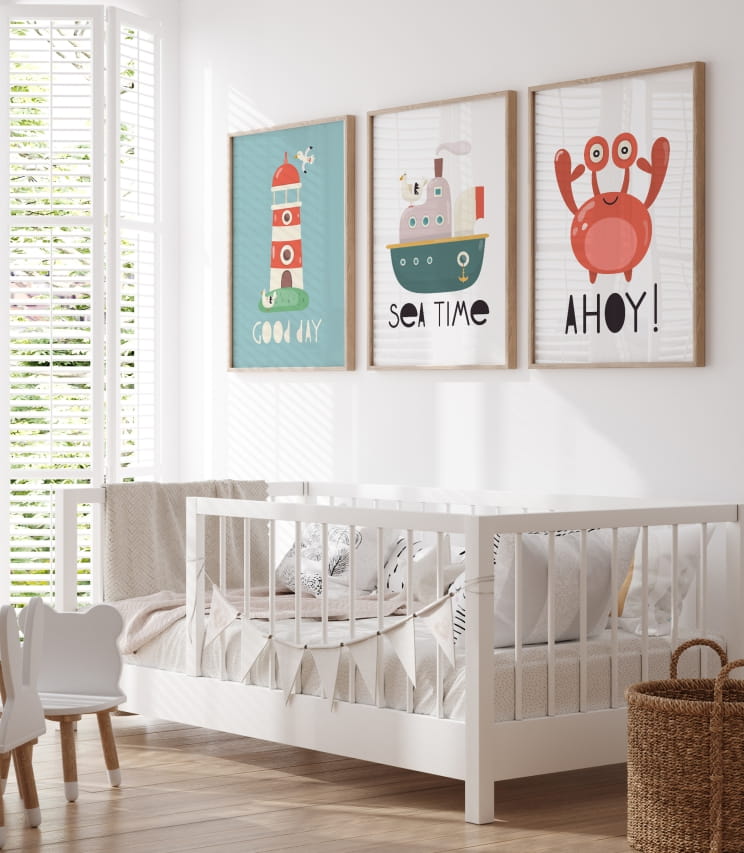 Uroczy plakat z łódką dla dziecka. Pięknie będzie prezentował się w pokoju maluszka, który jest fanem morskich klimatów. Plakat sprawdzi się zarówno jako pojedyncza ozdoba, jak też w zestawie z innymi plakatami o podobnej tematyce. Barwy w kolorach ziemi nadają grafice neutralny wygląd. Obrazek można więc dowolnie oprawić lub zestawić z dekoracjami w pokoju.