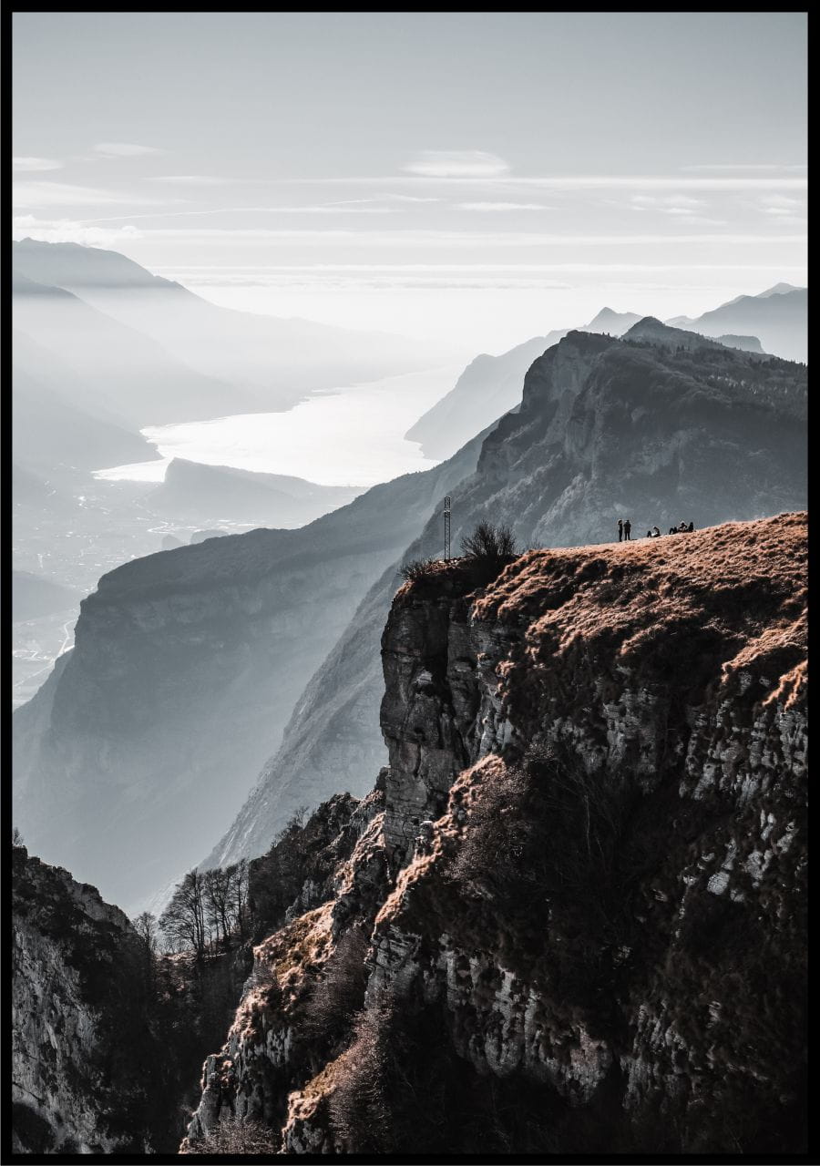 Fotografia zapierającego dech w piersiach wzniesienia na włoskiej Sycylii. W tle widoczne jest pięknie oświetlone jezioro.