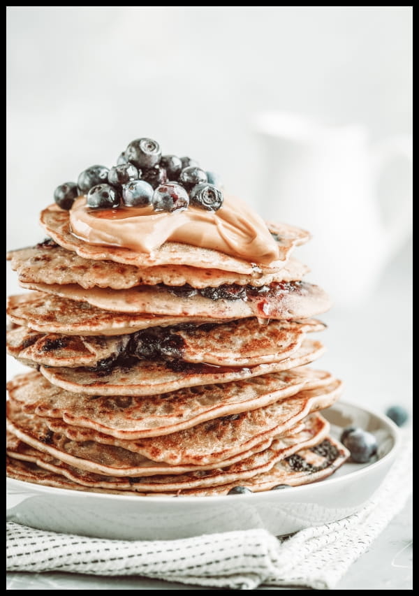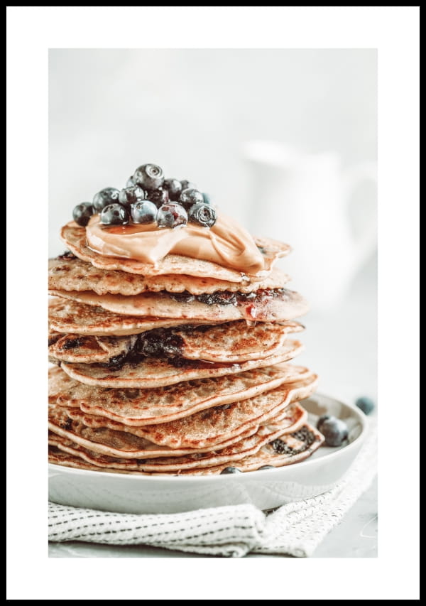 Zdjęcie pysznego deseru do powieszenia na ścianę - naleśniki z jagodami.