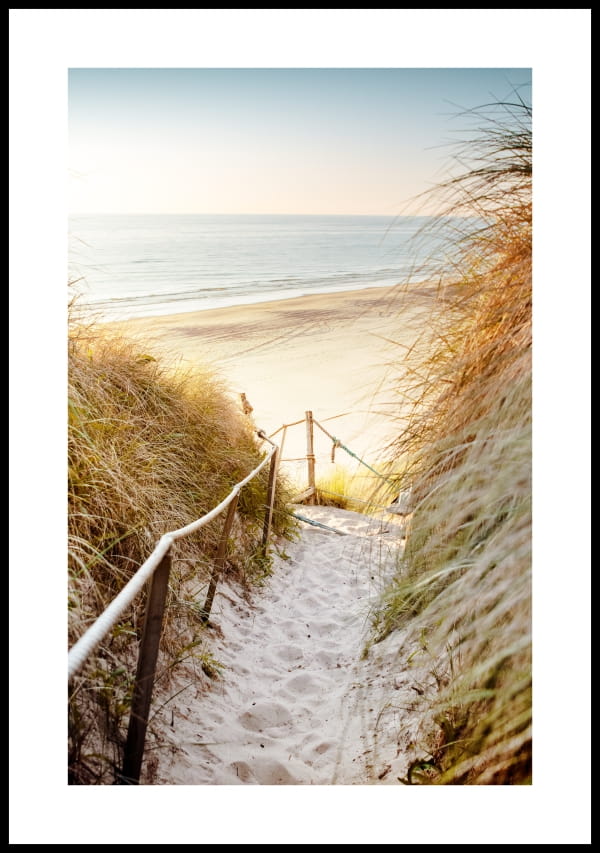 Fotografia zejścia na piaszczystą plażę nad morzem.