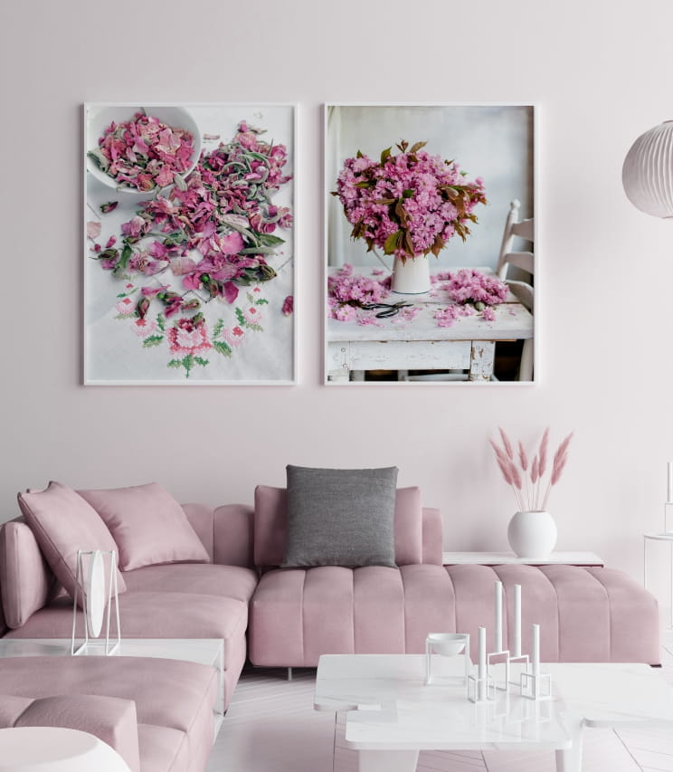 Plakat ze zdjęciem rozsypanych suszonych pąków i płatków kwiatów, utrzymany w różowo-czerwonej kolorystyce. Z pewnością będzie przyciągać wzrok i doda wnętrzu unikalnego charakteru. Plakat idealnie nadaje się do pokoju dziennego, sypialni. Świetnie komponuje się z innymi plakatami z naszych propozycji.