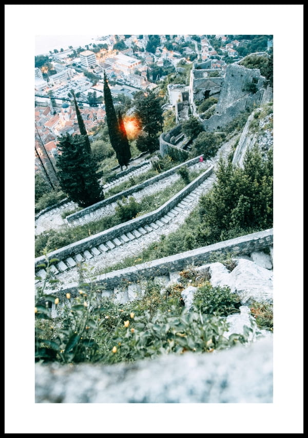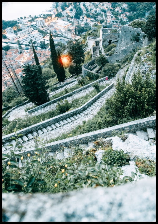 Piękny plakat przedstawiający urokliwe miejsce, widok na miasto Kotor nad którym górują ruiny zamku pochodzącego z czasów rzymskich. Ta przestrzeń pobudza wyobraźnię, relaksuje, przenosi w inny świat. Stonowana kolorystyka plakatu działa kojąco i uspokajająco. Snuj marzenia i ciesz się atmosferą tego magicznego miejsca. Plakat będzie stanowić idealną ozdobę w każdym pomieszczeniu, w którym lubisz przebywać.