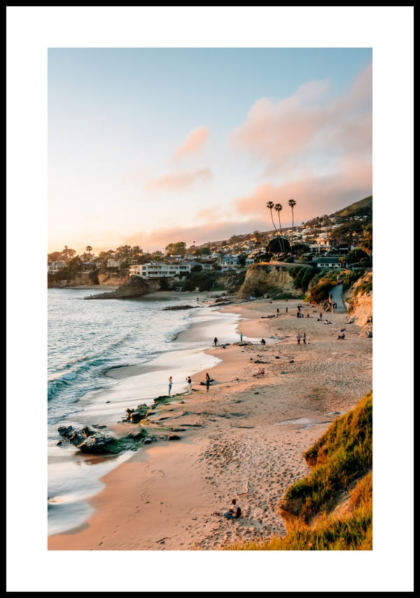 Plakat ze zdjęciem przepięknej plaży w Kalifornii. Niezwykle realistyczne ujęcie sprawia, że patrząc na plakat, można poczuć się jak na piaszczystym brzegu oceanu.