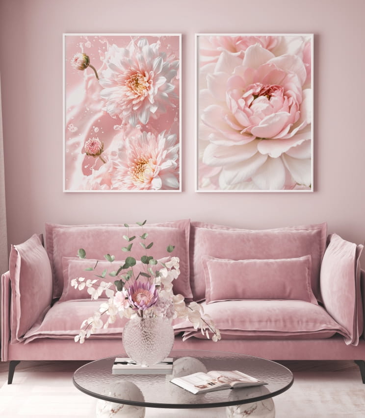 Mocno różowy kwiatowy zestaw 2 plakatów, który wprowadzi powiew świeżości do każdego wnętrza.