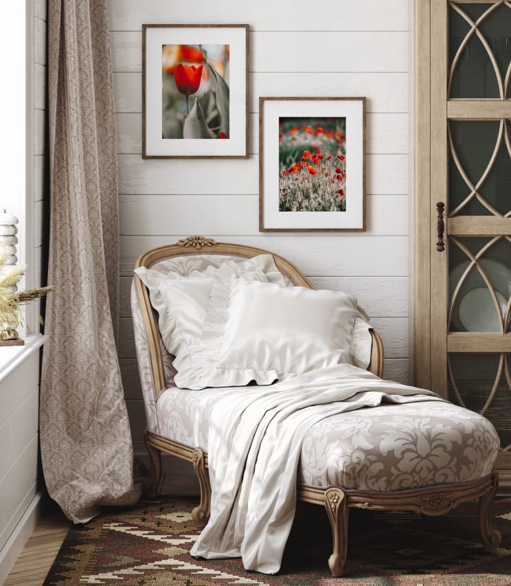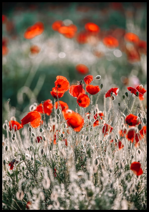 Zestaw plakatów z kwiatami z czerwonymi akcentami maków i tulipanów.