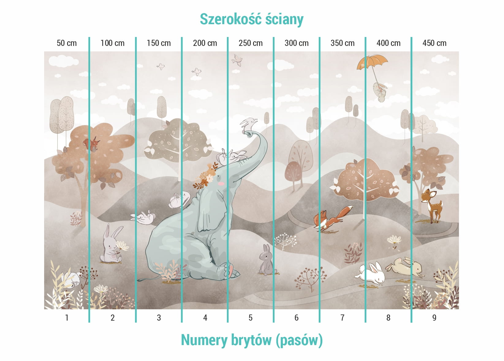 Maksymalny wymiar fototapety to 450x 280 cm. Składa się ona z 9 pasów (brytów) o wymiarze 50 x 280 cm (każdy).
