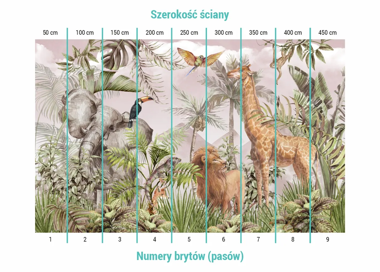 Maksymalny wymiar fototapety to 450x 280 cm. Składa się ona z 9 pasów (brytów) o wymiarze 50 x 280 cm (każdy).