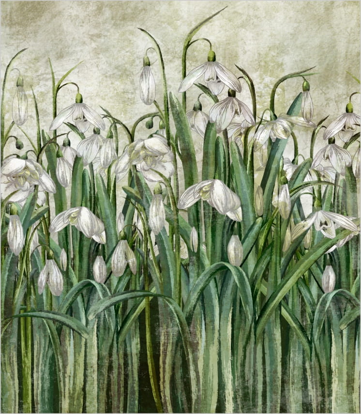 Próbka - wycinek tapety białe przebiśniegi tle 31x31 cm, w skali 1:1. Zamówienie próbki da pogląd na kolory wydruku, rodzaj materiału i rzeczywisty wymiar wzoru na tapecie. Dzięki próbce łatwiej dopasujesz kolor farby do pozostałych ścian czy elementów wystroju pomieszczenia.