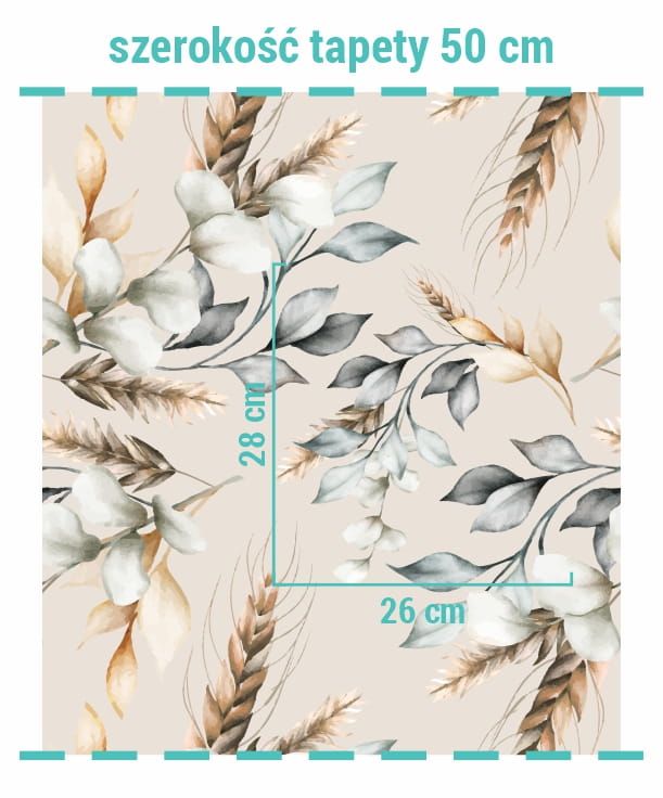 Np. Wymiary ściany to 430 cm szerokości i 260 cm wysokości. W takim przypadku należy podzielić 430 cm przez 50, daje nam to 8,6 brytu. Ponieważ nie ma możliwości zamówienia jedynie części brytu, do koszyka należy dodać 9 pasów tapety, o wymiarach 50 x 280 cm.