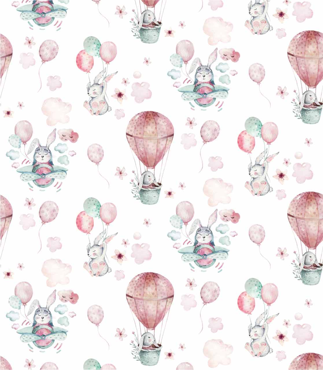 Próbka - wycinek tapety latające zające o wymiarze 31x31 cm, w skali 1:1. Zamówienie próbki da pogląd na kolory wydruku, rodzaj materiału i rzeczywisty wymiar wzoru na tapecie. Dzięki próbce łatwiej dopasujesz kolor farby do pozostałych ścian czy elementów wystroju pomieszczenia.