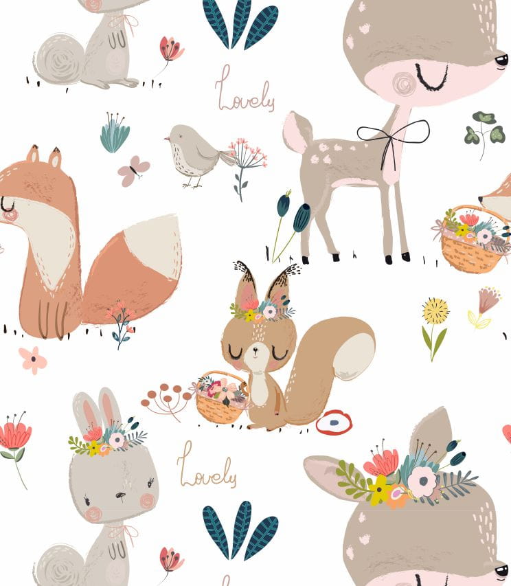 Próbka - wycinek tapety zwierzątka leśne o wymiarze 31x31 cm, w skali 1:1. Zamówienie próbki da pogląd na kolory wydruku, rodzaj materiału i rzeczywisty wymiar wzoru na tapecie. Dzięki próbce łatwiej dopasujesz kolor farby do pozostałych ścian czy elementów wystroju pomieszczenia.