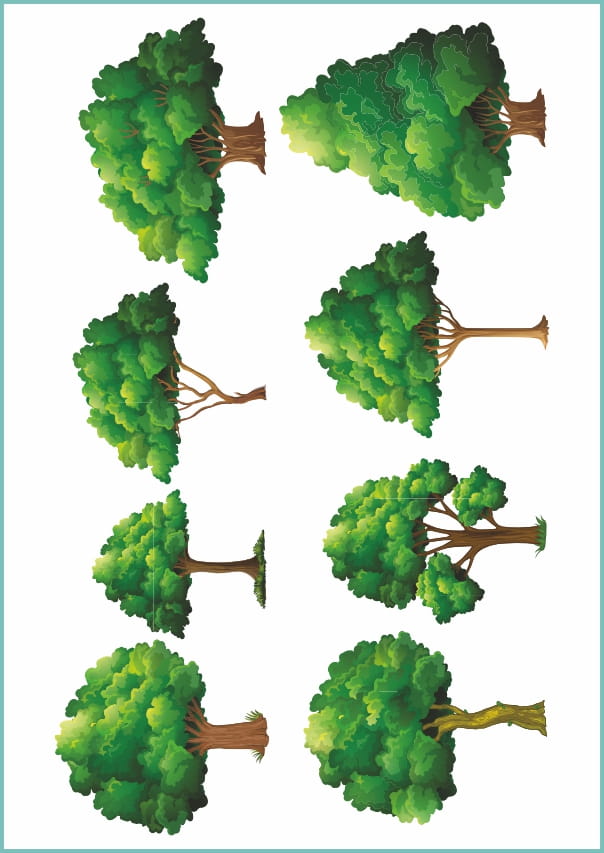 Zestaw tatuaży tymczasowych z zielonymi, różnorodnymi drzewami.