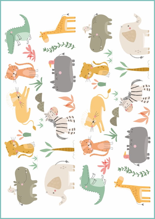 Sympatyczne zwierzęta tropikalne w pastelowych kolorach będą pięknie się prezentować jako tatuaże nie tylko dla dzieci.