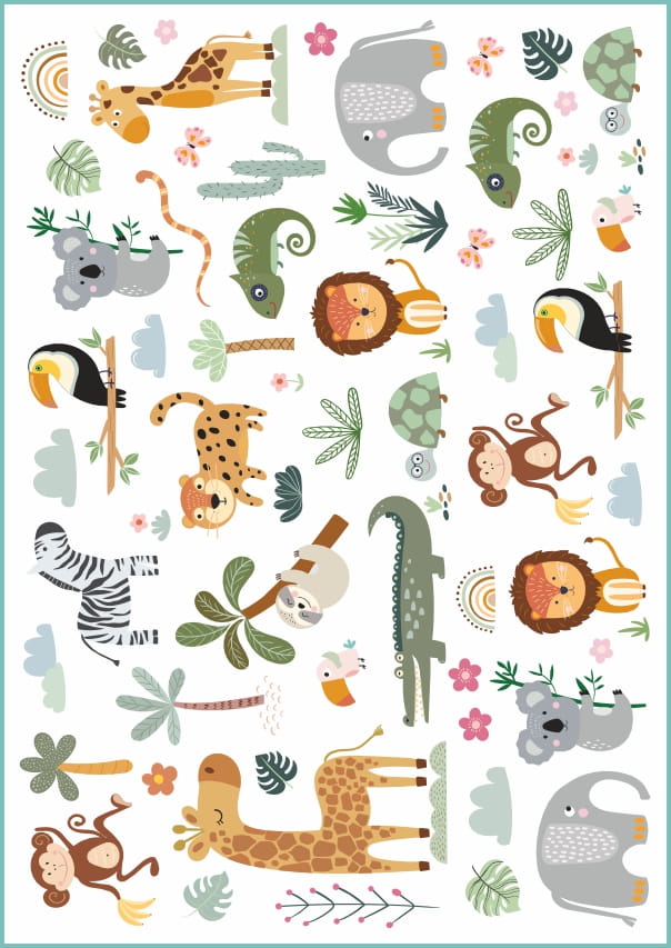 Zestaw dziecięcych tatuaży z uroczymi zwierzątkami oraz roślinkami wywoła uśmiech na twarzy każdego maluszka.