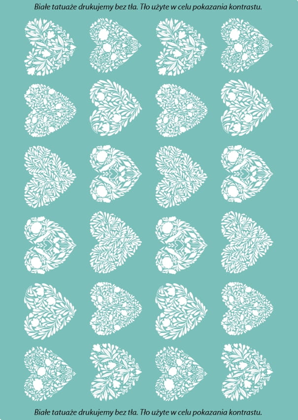 Roślinne tatuaże zmywalne ze wzorem delikatnych, kwiatowych serduszek. Tatuaże dostępne są w wersji kolorowej oraz białej.