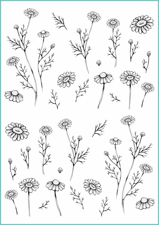 Zestaw tatuaży zmywalnych ze stokrotkami i delikatnymi gałązkami i listkami.