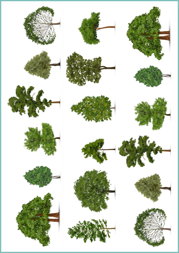 Grafiki drzew jako tatuaże zmywalne - duży zestaw realistycznych wzorów.