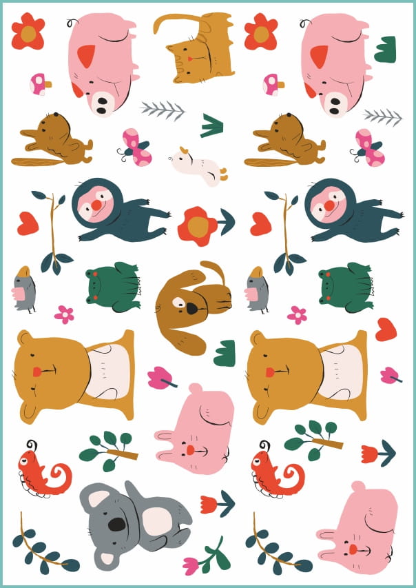 Zestaw uroczych, zabawnych zwierzaków. Taki tatuaż umieszczony na rączce poprawi humor zarówno dorosłym, jak i dzieciom.