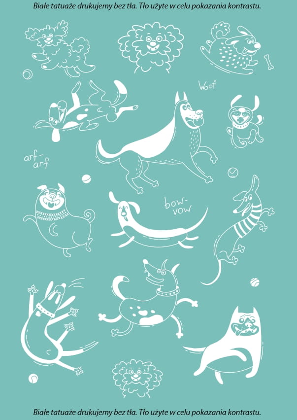 Zestaw tatuaży zmywalnych z wesołymi pieskami, który sprawdzi się nie tylko u dzieci.